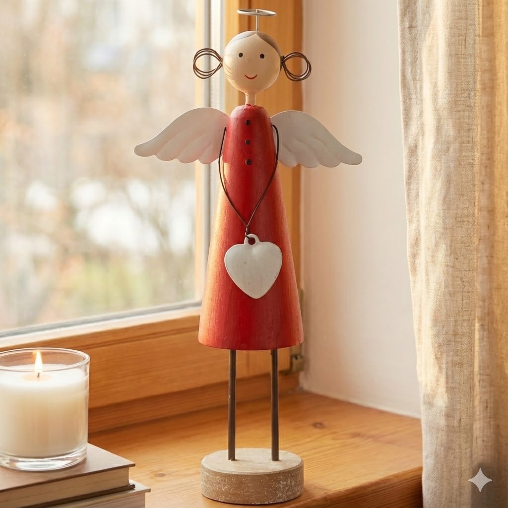 Ten uroczy aniołek z drewna w czerwonej sukience to doskonała dekoracja na święta, która wniesie do wnętrza ciepło, radość i odrobinę magii. Aniołek trzyma białe serce, które symbolizuje miłość i spokój, a jego pogodna twarz i delikatne skrzydełka sprawiają, że doskonale komponuje się z bożonarodzeniowymi aranżacjami. Całość wykonana jest z naturalnych materiałów, z dbałością o detale, co czyni go nie tylko dekoracją, ale i wyjątkowym upominkiem. Idealnie pasuje do wnętrz urządzonych w stylu skandynawskim, rustykalnym czy klasycznym. To ponadczasowy akcent do każdego domu.