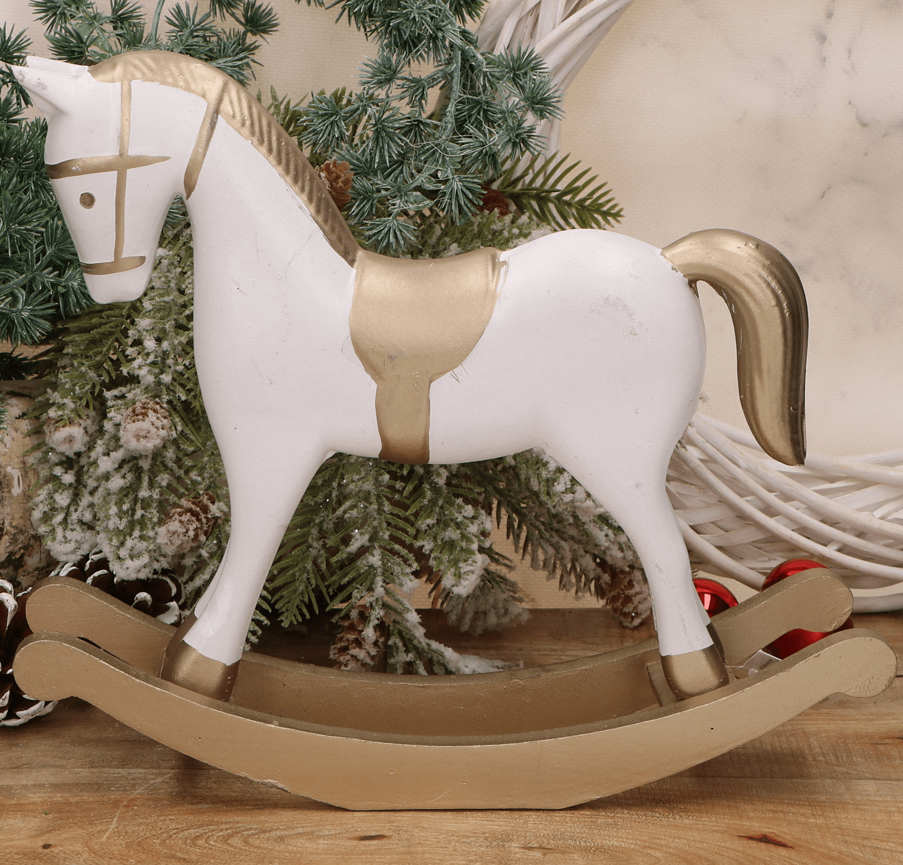 Drewniany koń na biegunach ze złotymi elementami 26,5x23cm