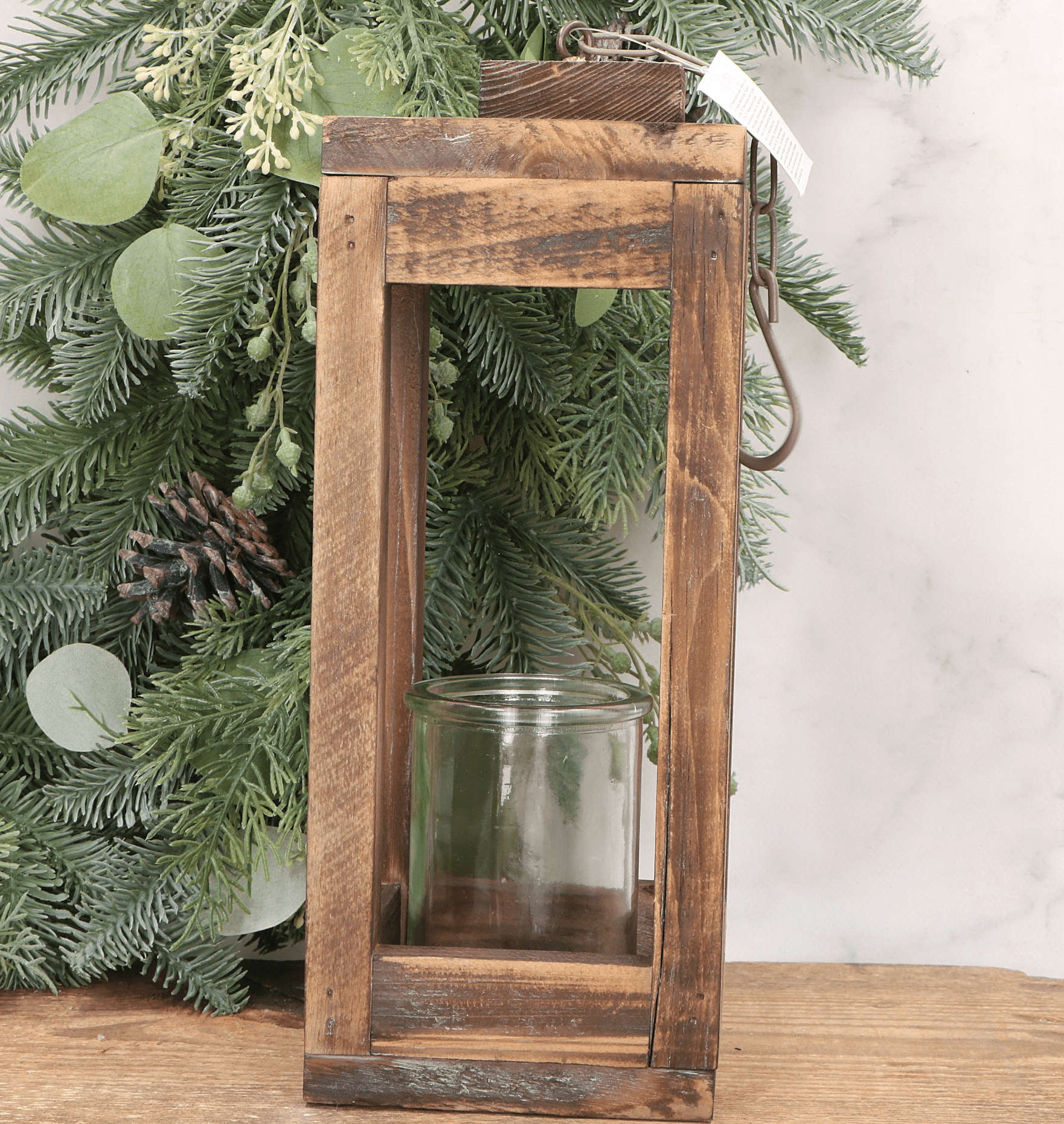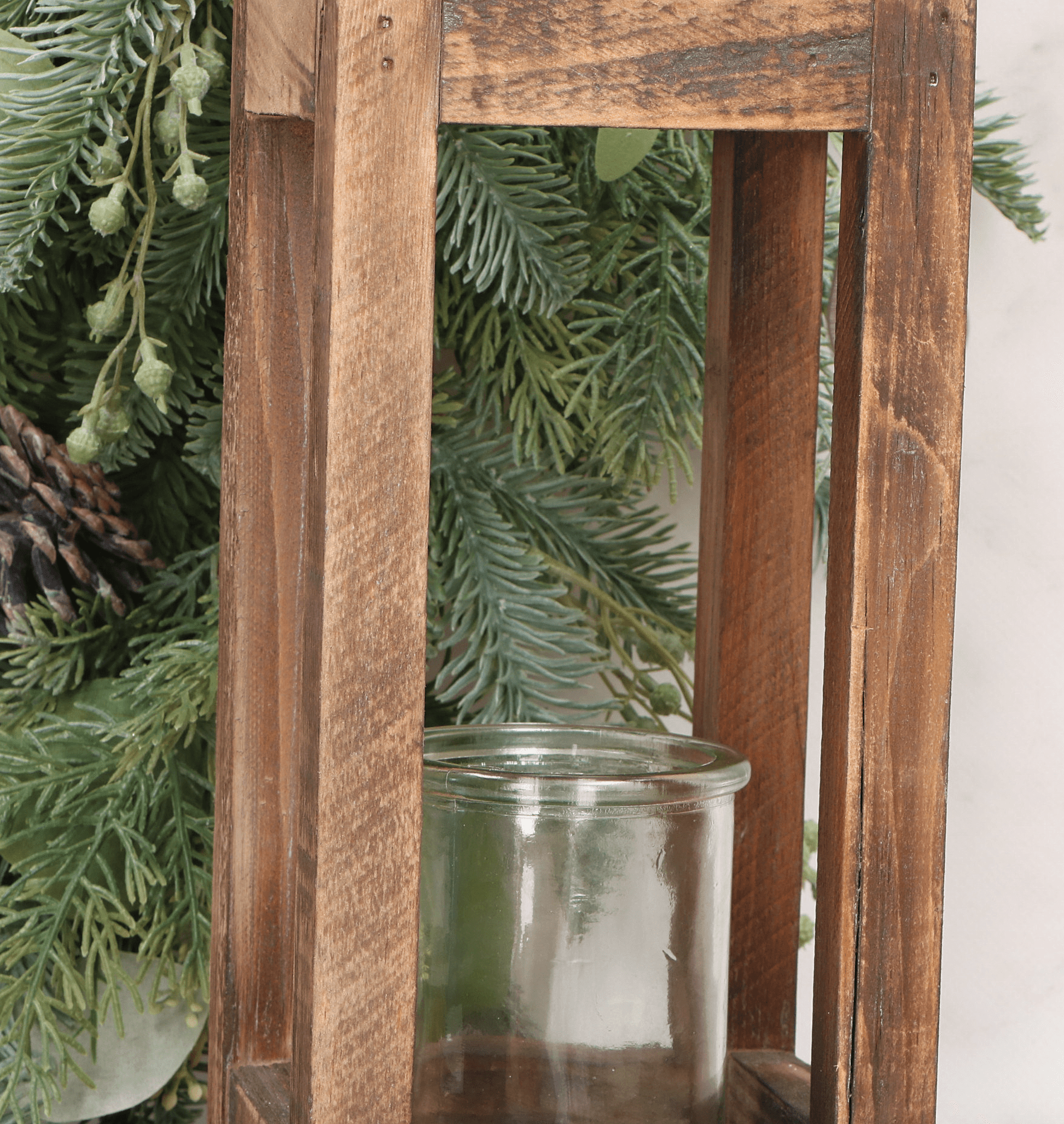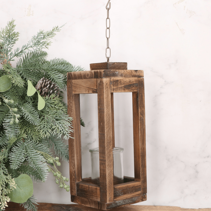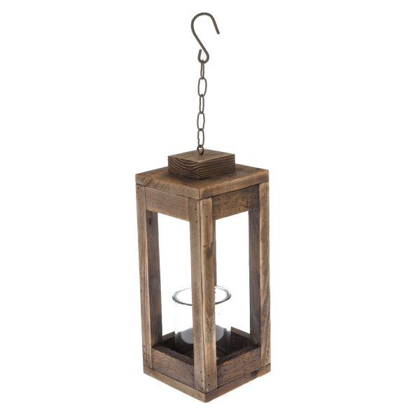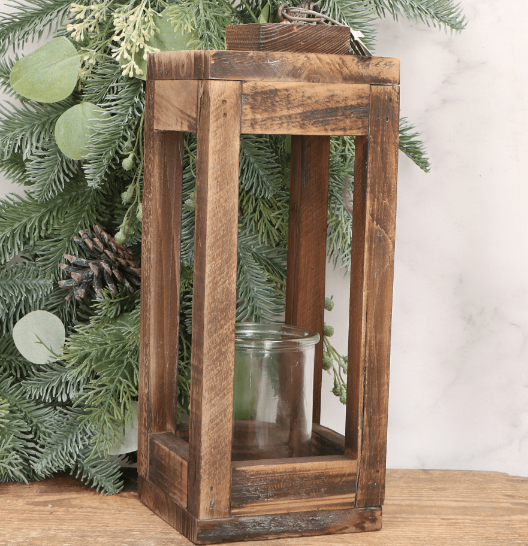 Drewniany świecznik ze szkłem naturalny dekoracja stołu 19 X 12 CM