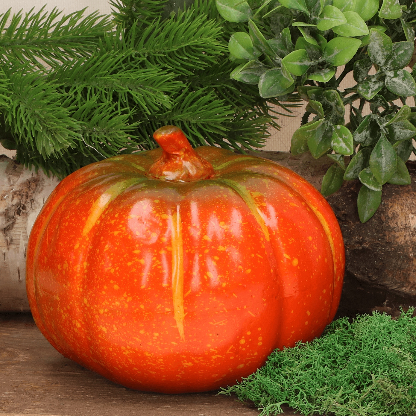 Ta urocza dynia z tworzywa sztucznego jest doskonałą ozdobą na każdą jesień. Realistyczny wygląd sprawia, że idealnie nadaje się do tworzenia przytulnego, sezonowego klimatu w Twoim domu. Wytrzymały materiał gwarantuje, że dynia posłuży Ci przez wiele lat, nie tracąc swojego uroku. Dzięki niewielkim rozmiarom, łatwo ją umieścisz w dowolnym miejscu, od parapetu po stół. Bezpieczeństwo użytkowania sprawia, że jest idealna do domów z dziećmi i zwierzętami. Dodaj odrobinę jesiennego ciepła do swojego wnętrza z naszą plastikową dynią!