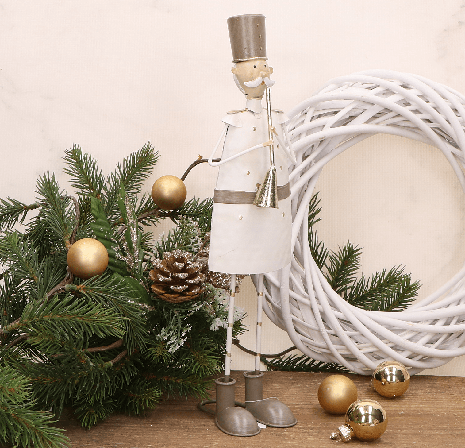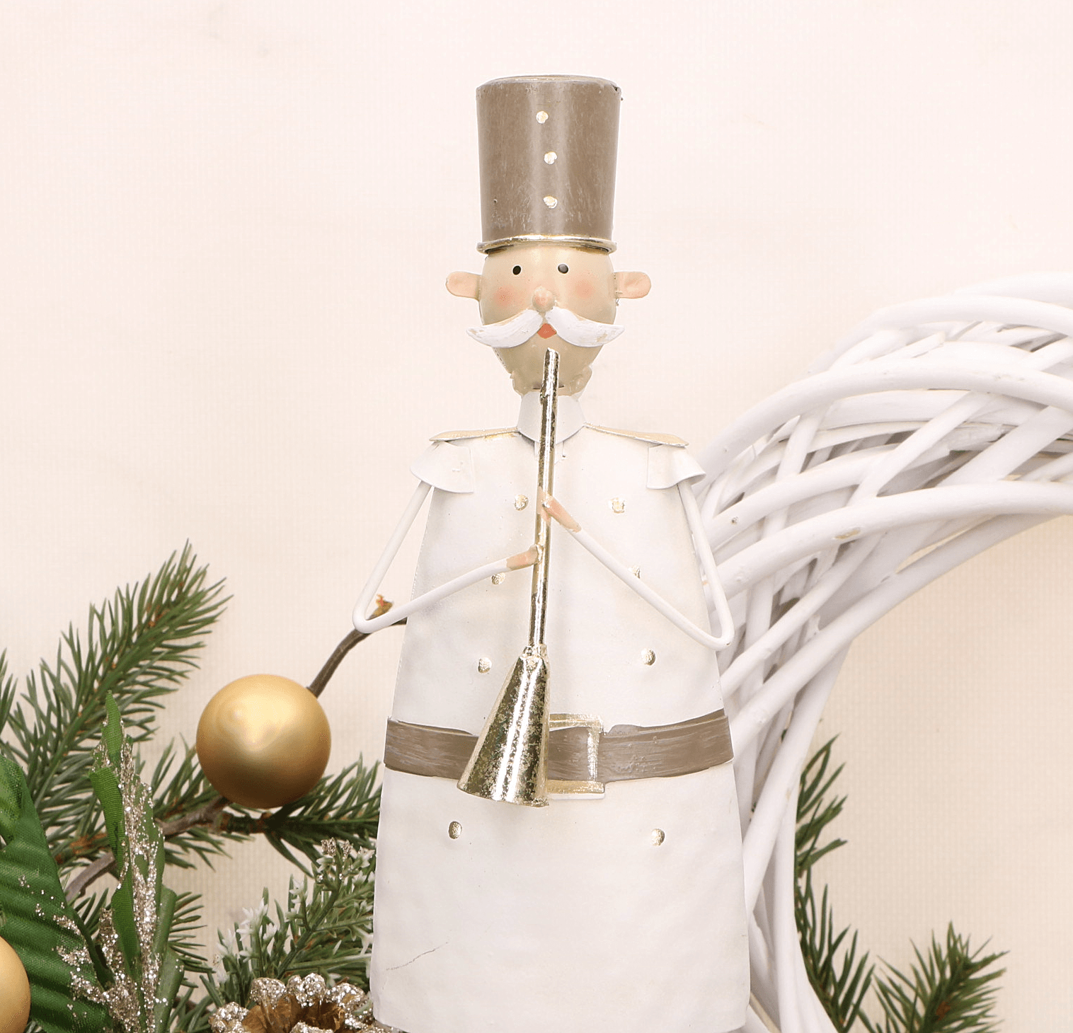 Dziadek matalowy w cylindrze, grający na trąbce, DUŻY 57,5 cm