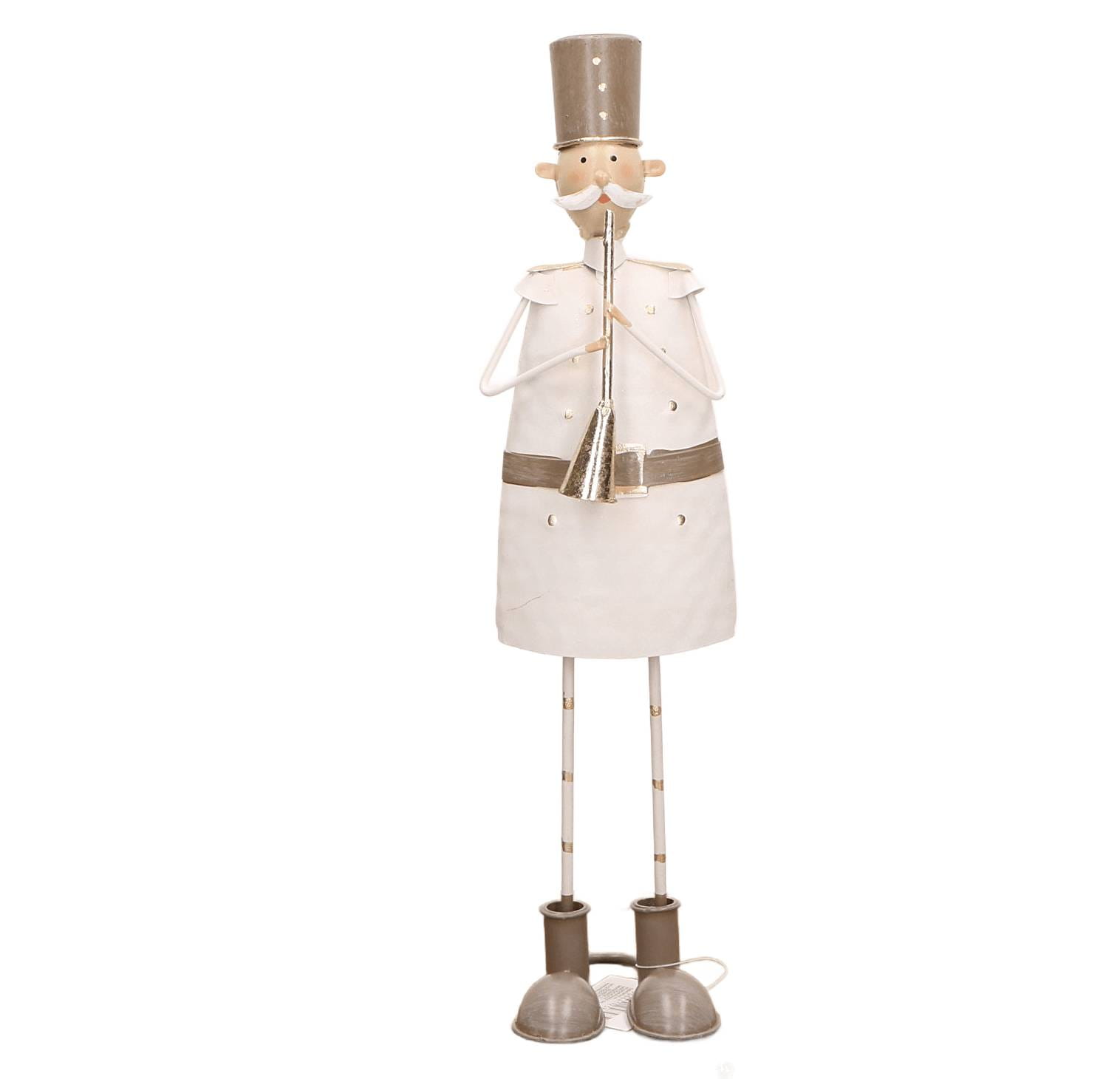 Dziadek matalowy w cylindrze, grający na trąbce, biało-beżowy MAŁY 29 cm