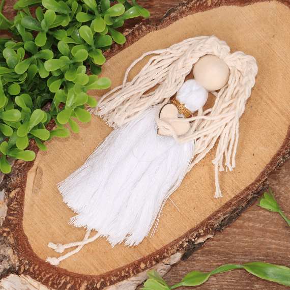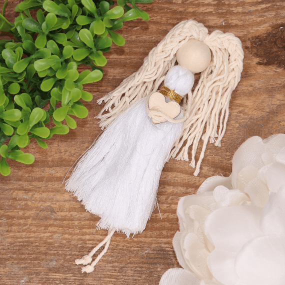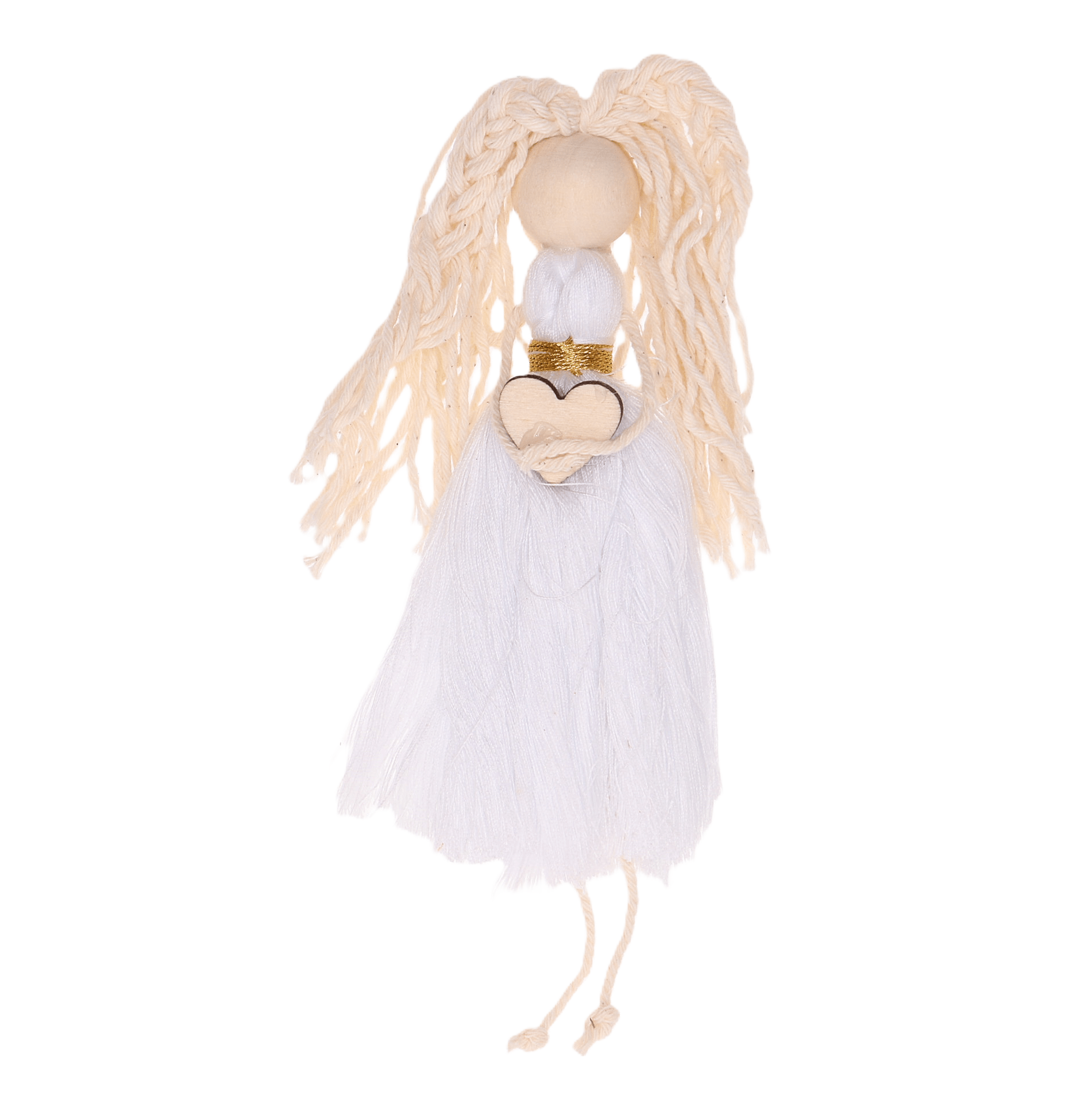 Ta ręcznie wykonana laleczka dekoracyjna to uroczy dodatek do każdego wnętrza. Jej biała sukienka z frędzlami nadaje jej subtelności i elegancji, a dbałość o detale sprawia, że jest wyjątkową ozdobą. Laleczka trzyma w rękach plecione serduszko, co czyni ją idealnym prezentem dla bliskiej osoby lub uroczą dekoracją na specjalne okazje. Naturalne materiały nadają jej ciepłego i przytulnego charakteru, doskonale komponując się z wnętrzami w stylu boho, skandynawskim czy rustykalnym.