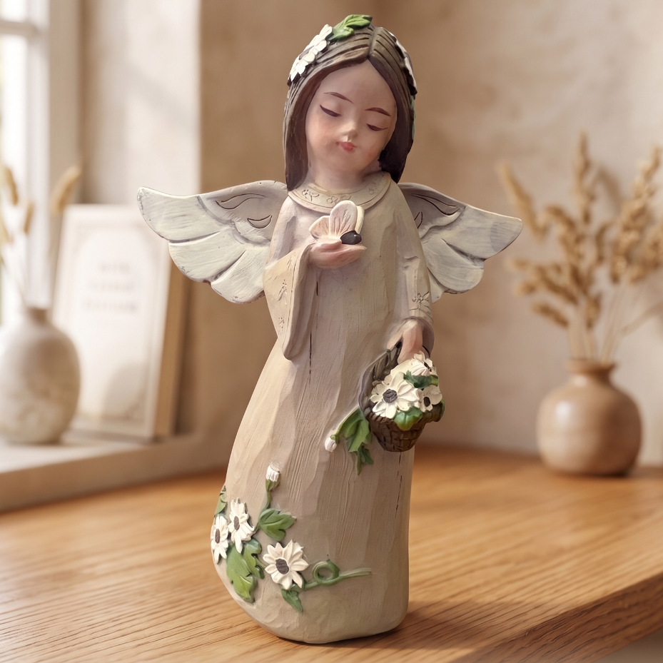Figurka Anioł 16x10cm z Motylem i Kwiatami Dekoracja Rustykalna Boho