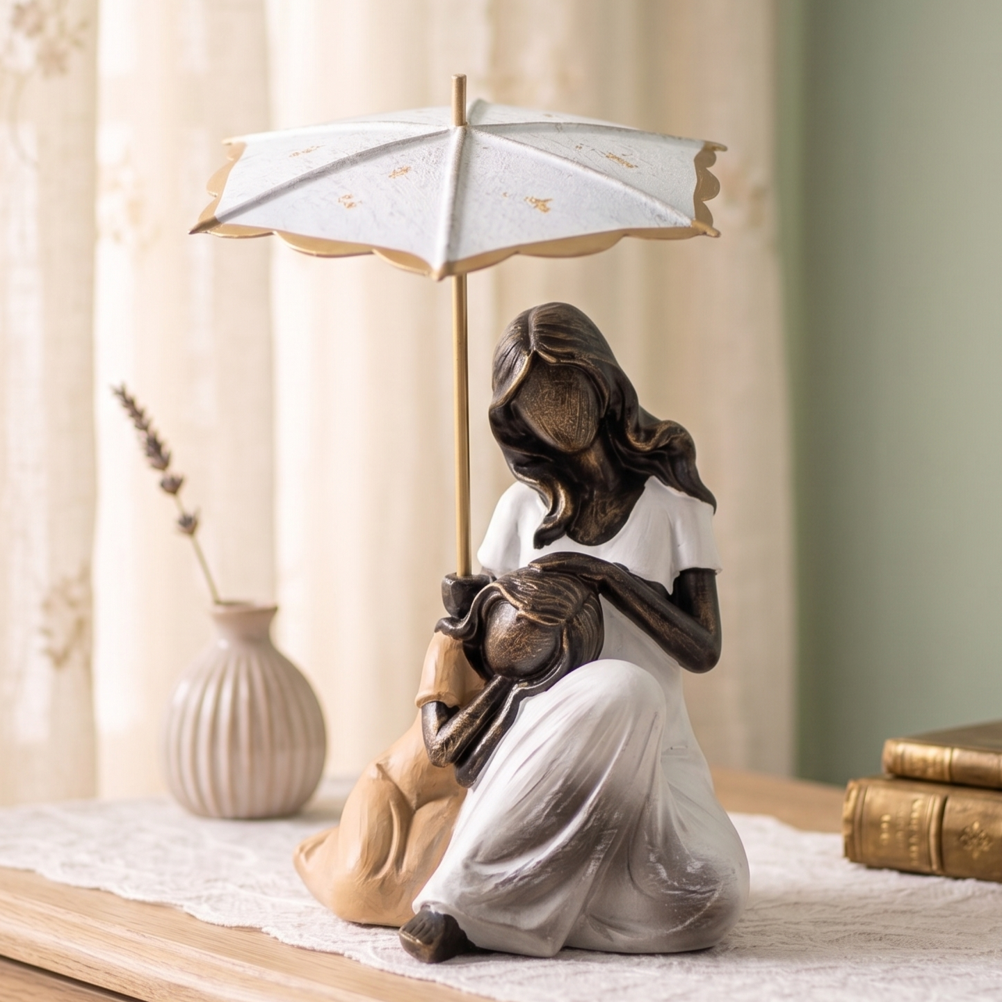 Figurka dekoracyjna – Mama z Dzieckiem (biała, z parasolką)