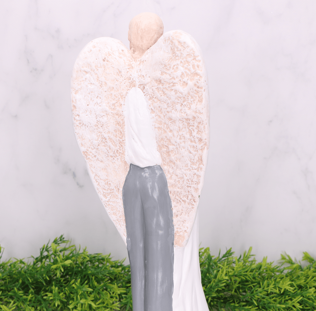 Figurka anioł stróż z chłopcem błękitna sukienka 31cm