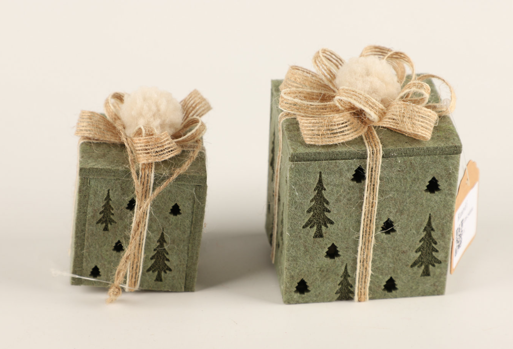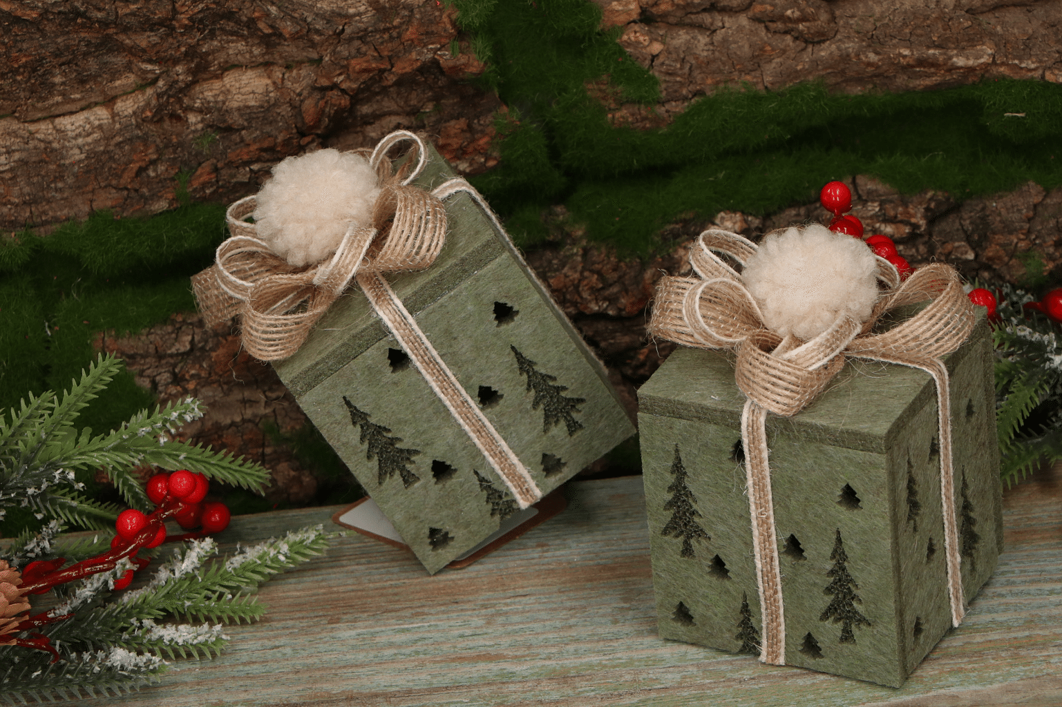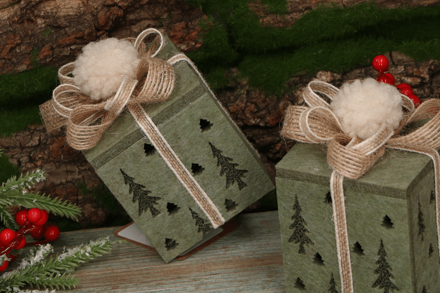 Świąteczne pudełko prezentowe z filcu 6 x 6 x 8.5 cm – dekoracja bożonarodzeniowa
