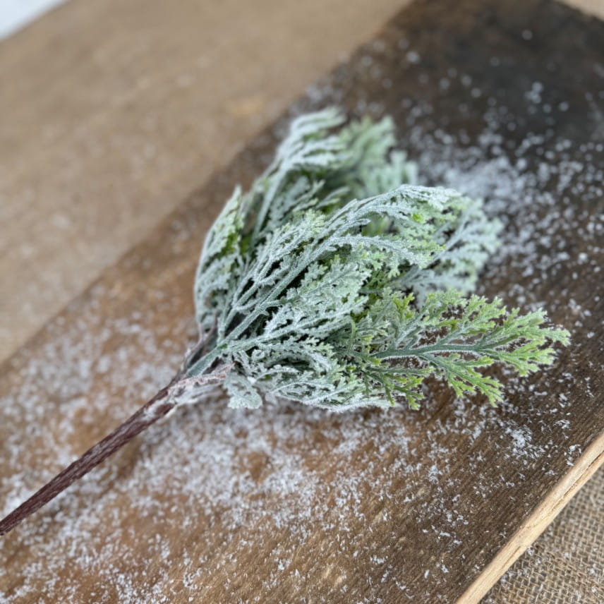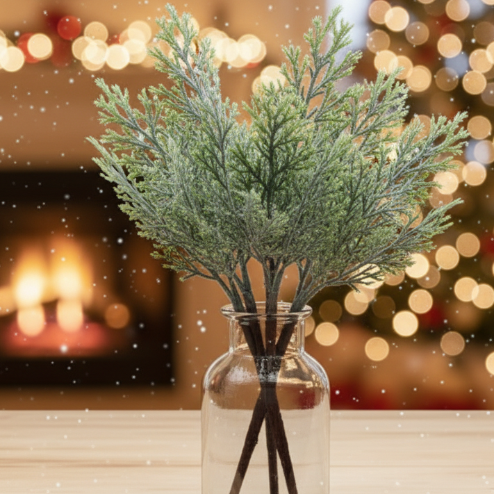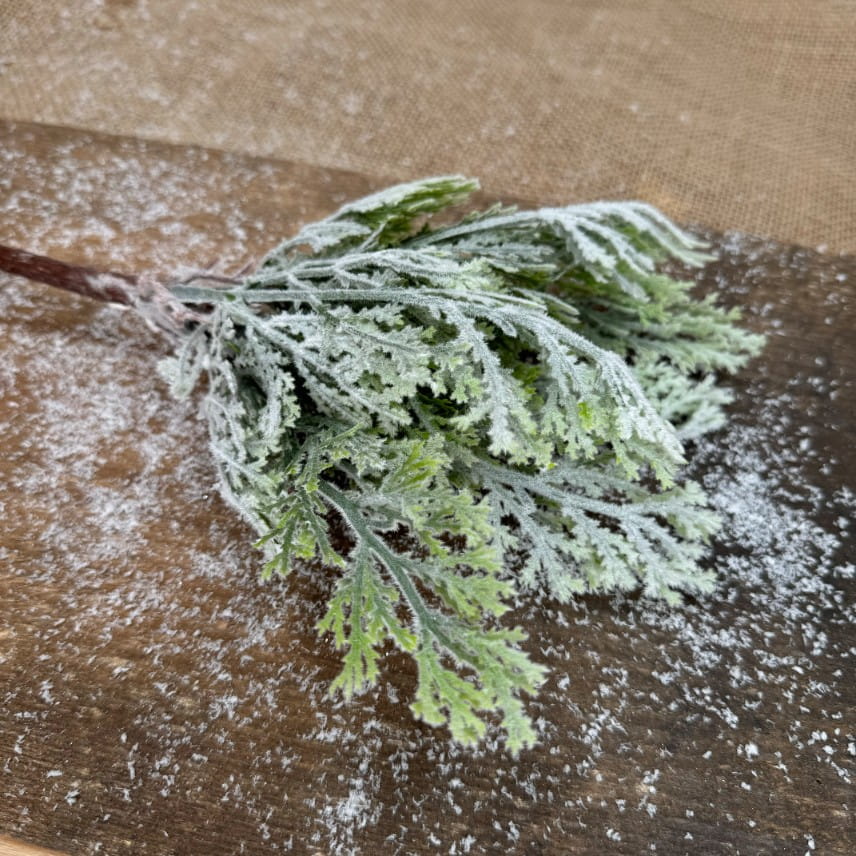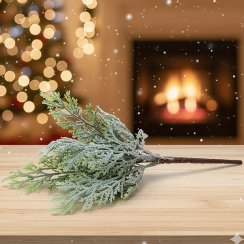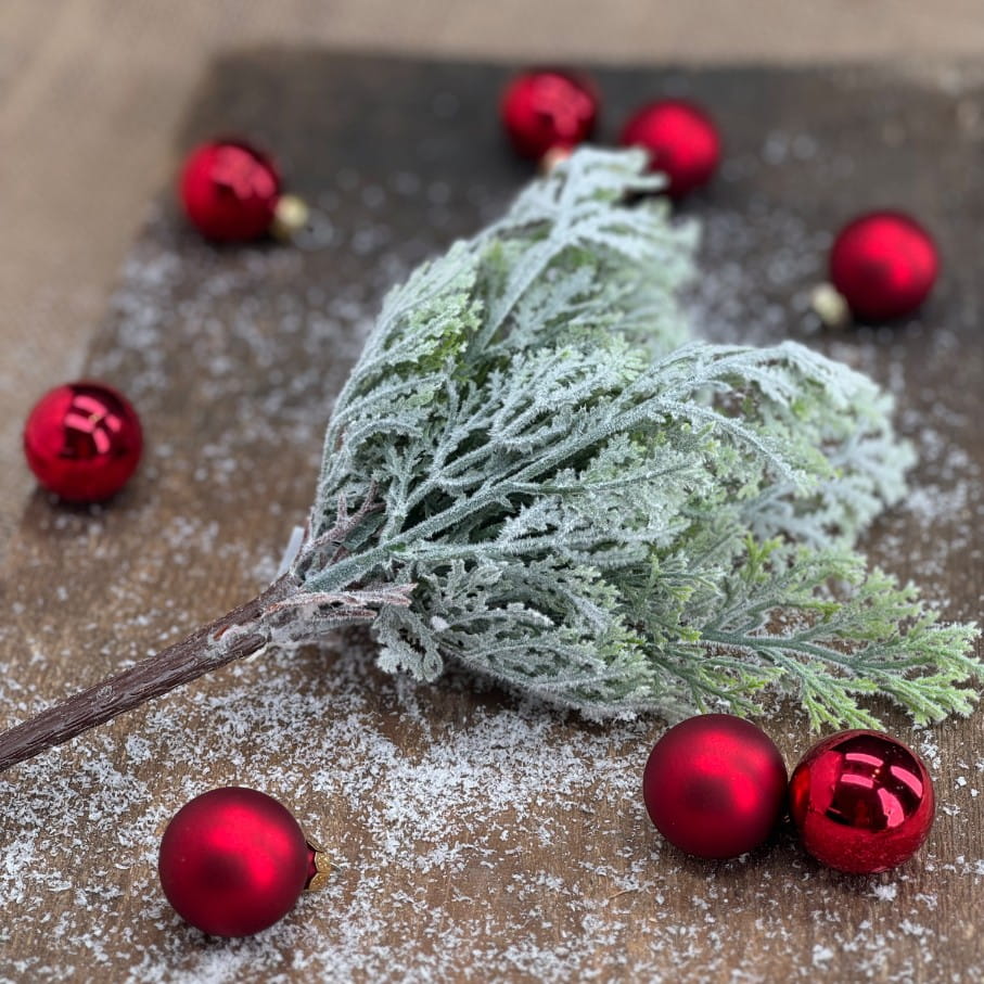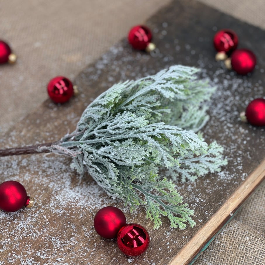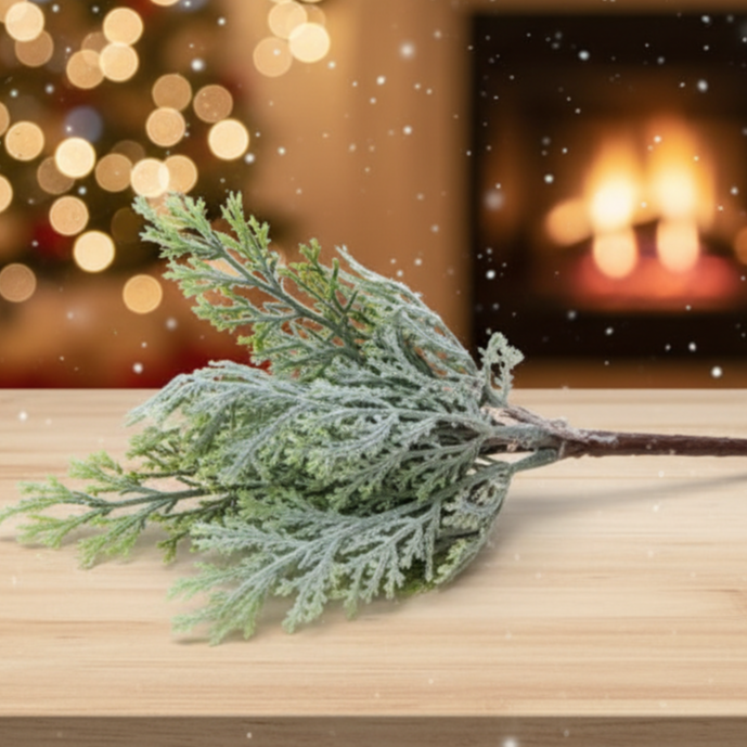 Gałązka dekoracyjna świąteczna oszroniona 26 x 12 cm – idealna do wieńców, stroików i bukietów