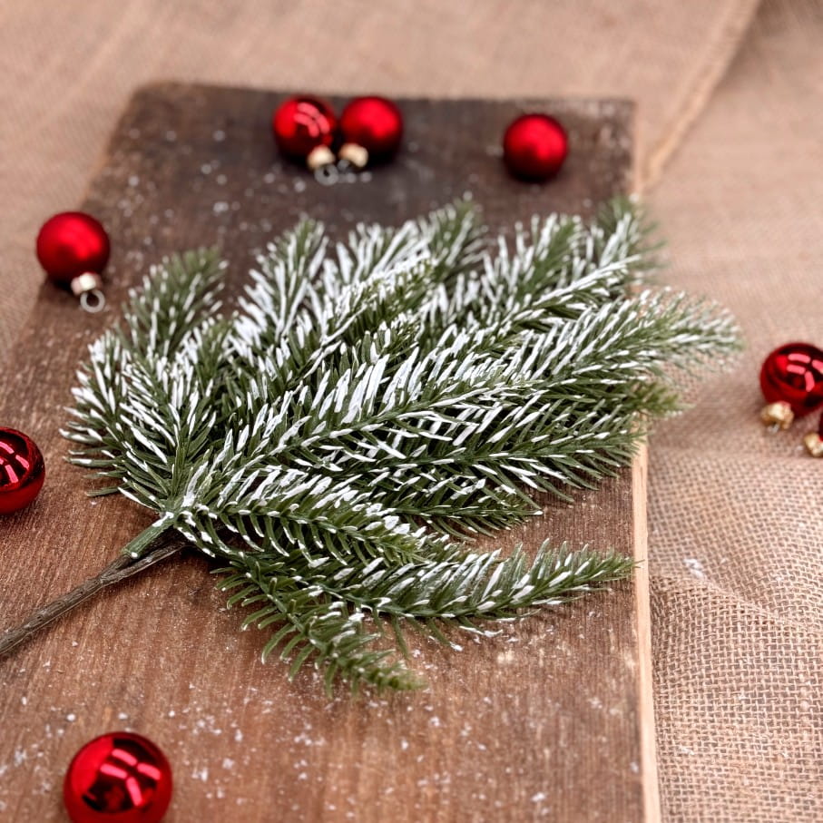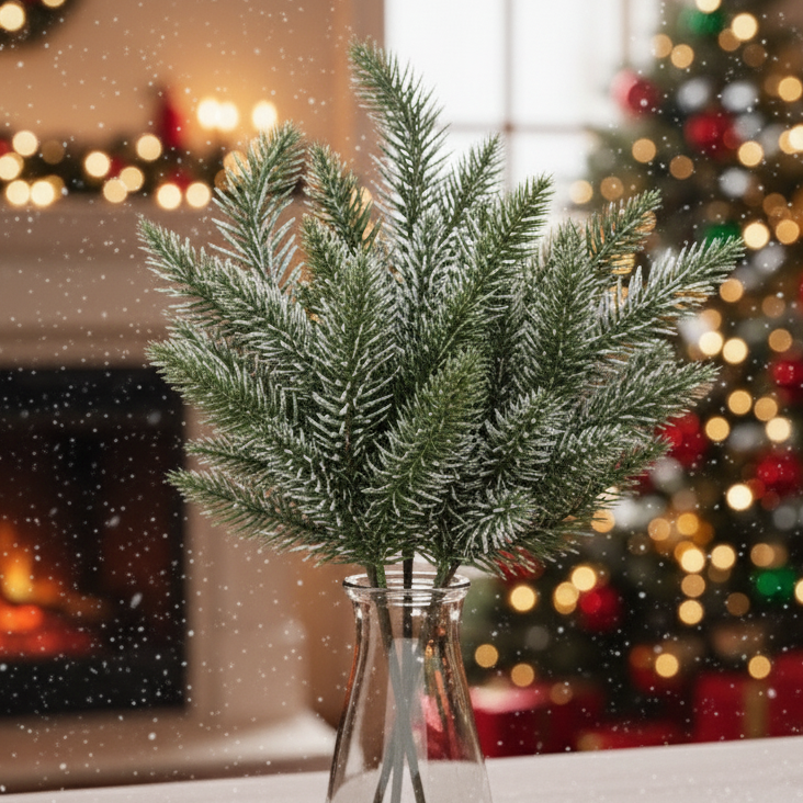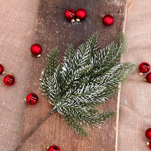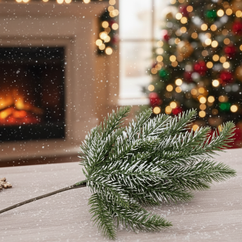 Gałązka dekoracyjna świąteczna oszroniona 43 x 15 cm – idealna do stroików, wieńców i dekoracji stołu