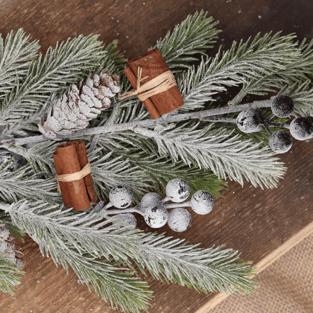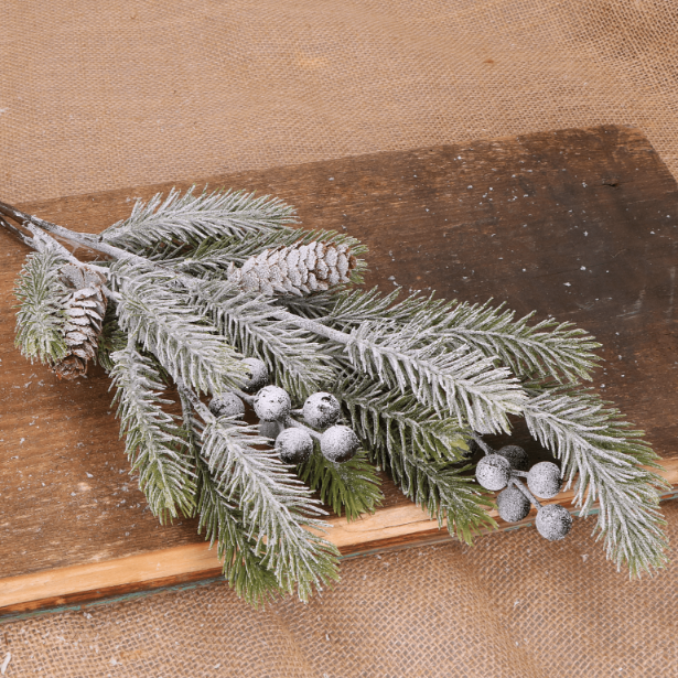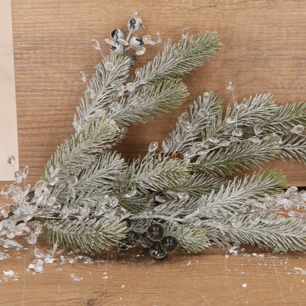 Gałązka dekoracyjna świąteczna z szyszkami i oszronionymi jagodami 68 x 23 cm