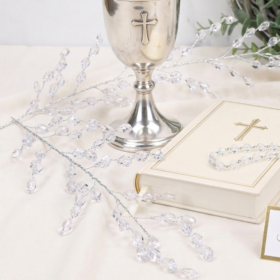 Urocze i delikatne kryształki na druciku będą doskonałym dodatkiem do wystroju sali weselnej, komunijnej, na chrzest, jak również w aranżacjach domowego zacisza.