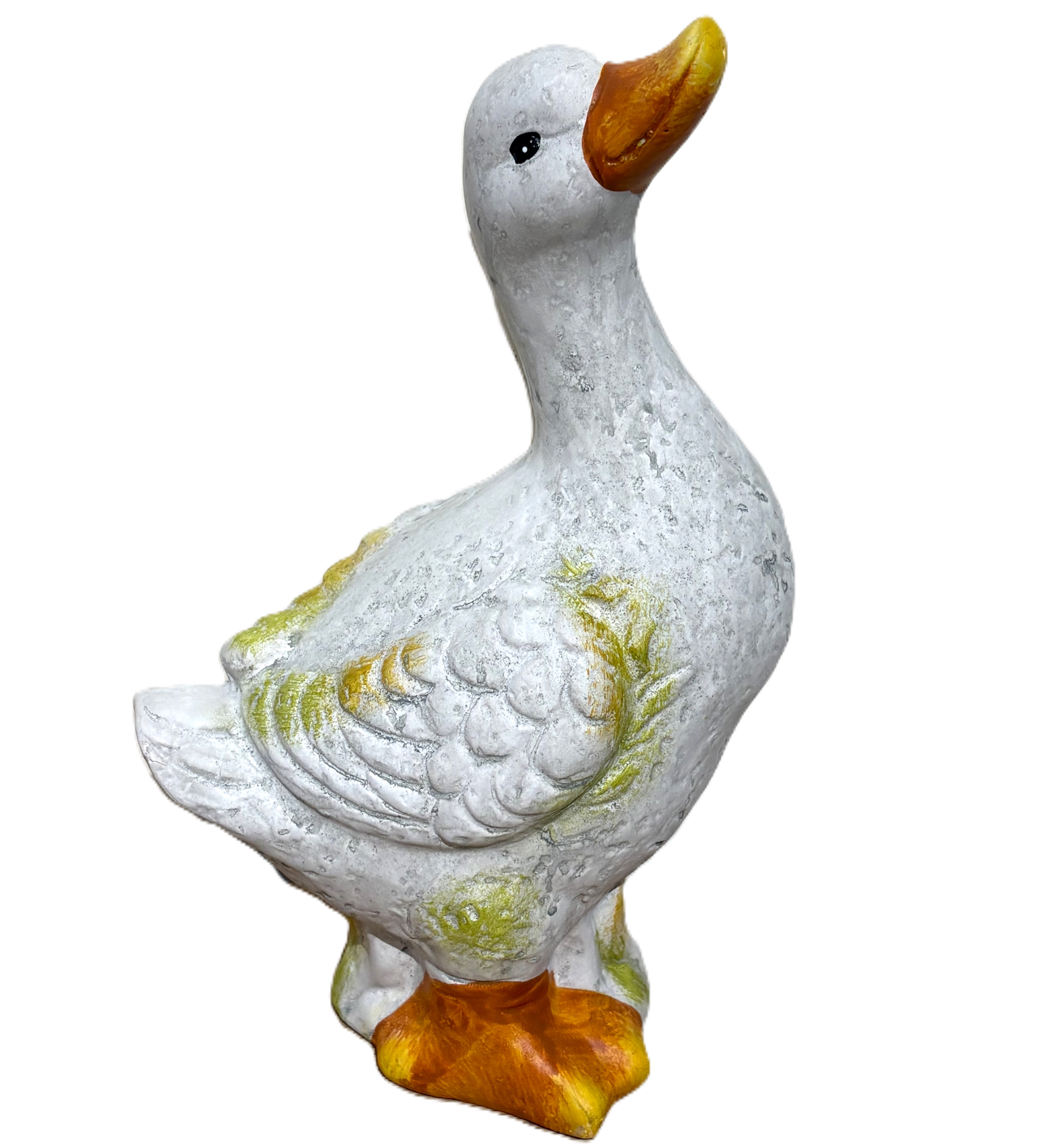 Gąska ceramiczna, biała z pomarańczowym dziobem i zielonymi przetarciami mix: 2 wzory 14,5*10,5*21,5 cm