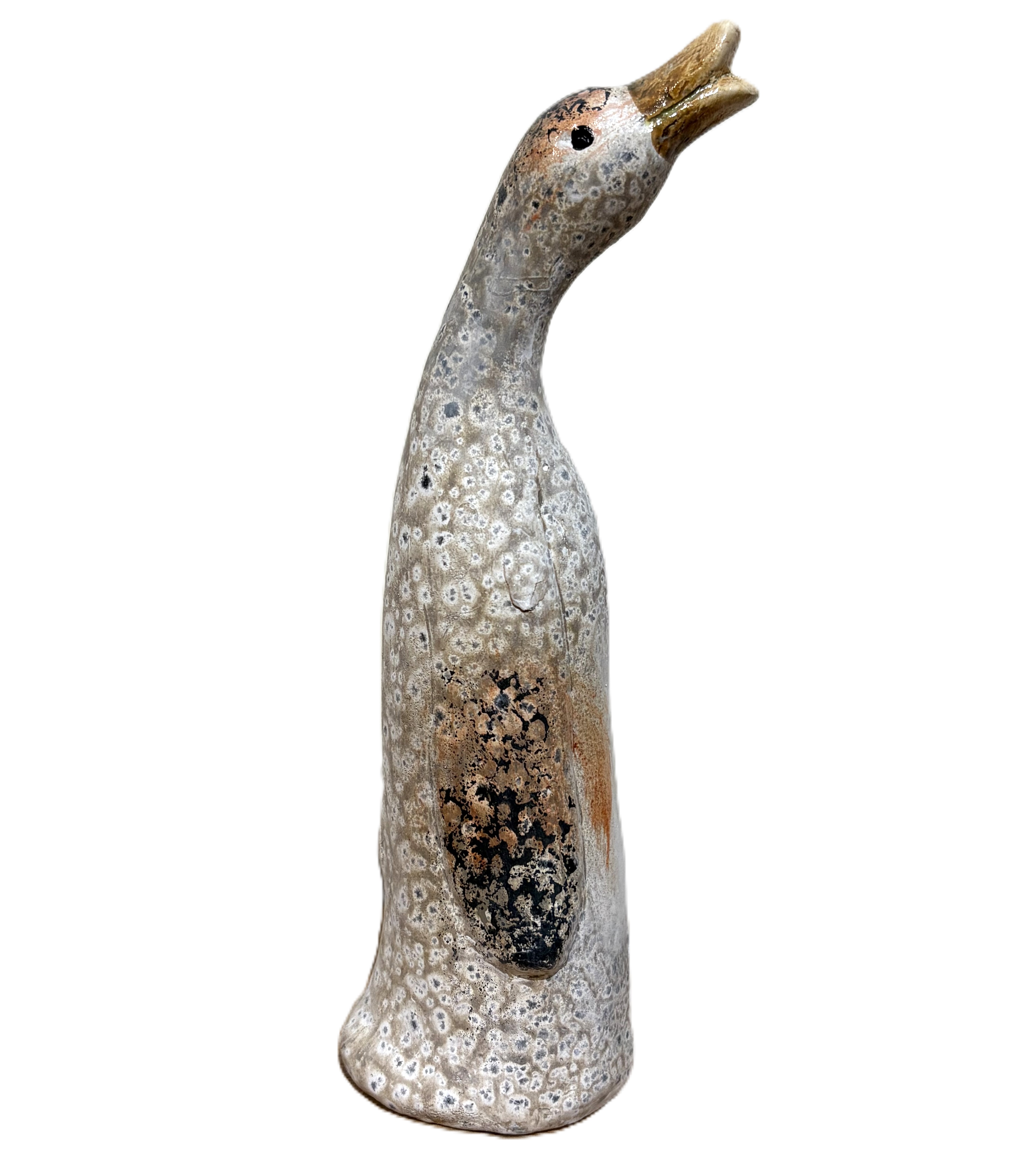 Gęś ceramiczna, stojąca z dziobem ku górze, kremowo-beżowa 9,3*7,5*25,8cm