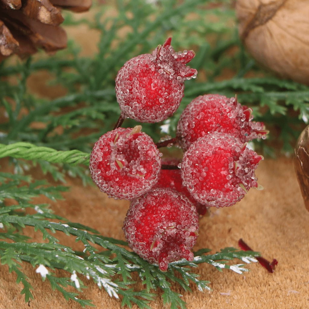 Głóg na druciku czerwony 15mm owoce kulki dekoracyjny 72szt.