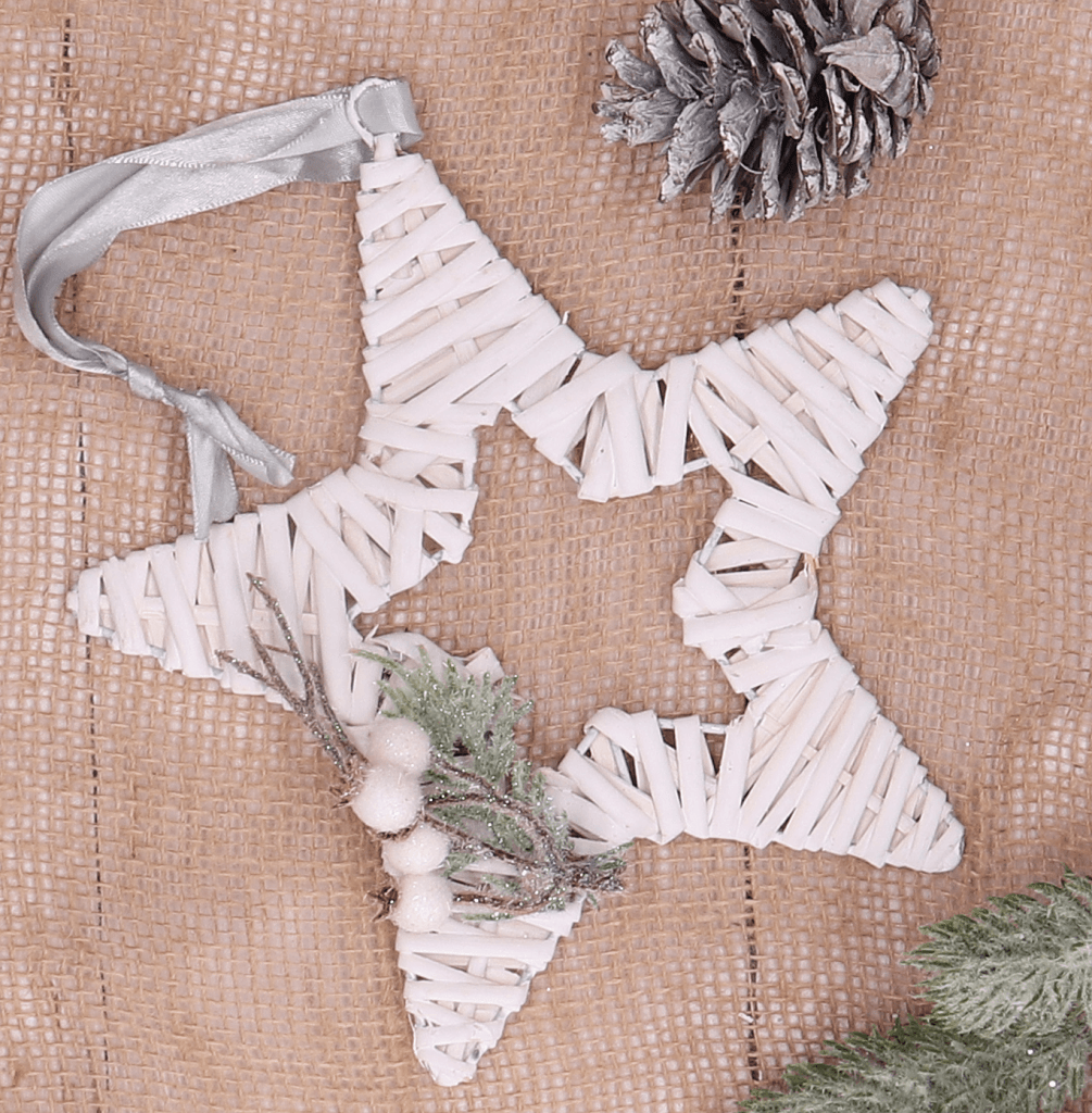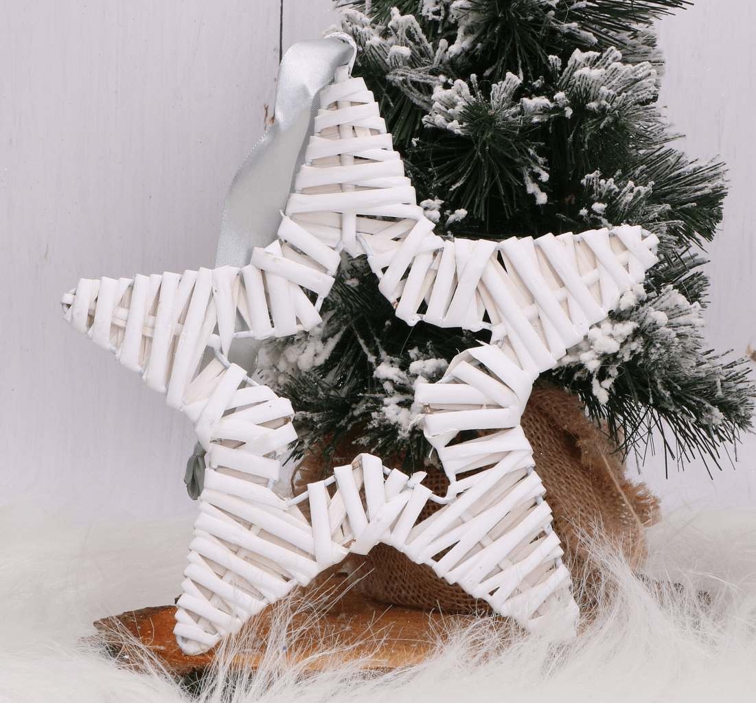 Gwiazdka biała wiklinowa na wstążce 20cm