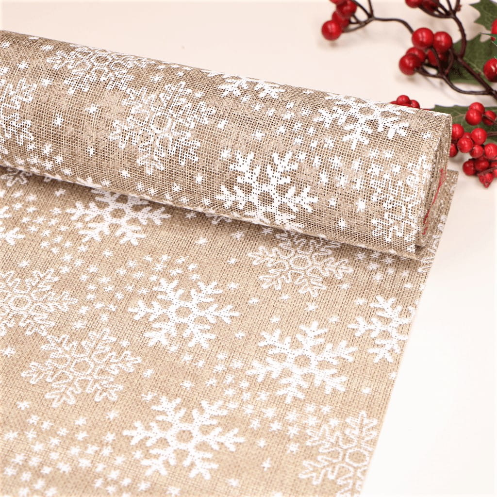 Juta świąteczna naturalna śnieżynki 48cm 4,5m