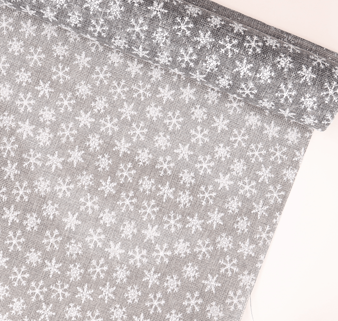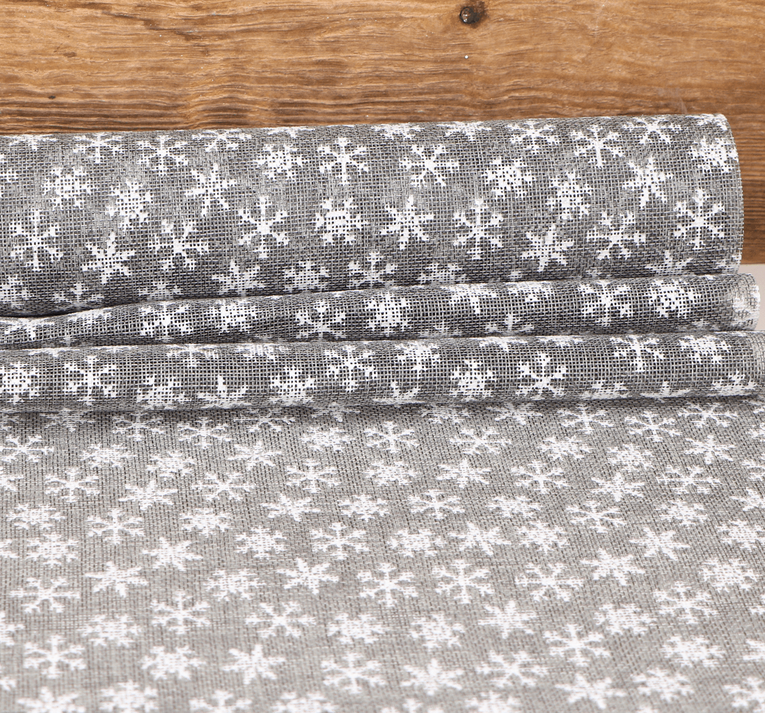 Juta świąteczna szara śnieżynki 48cm 4,5m