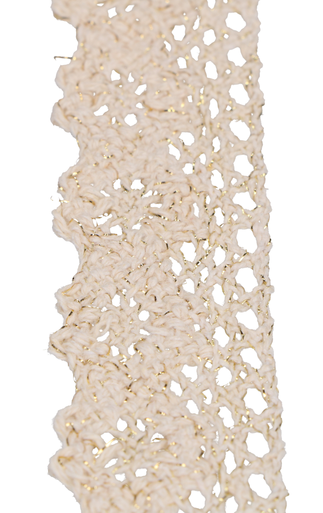 KORONKA MATERIAŁOWA BAWEŁNIANA KREMOWA ZE ZŁOTĄ NITKĄ