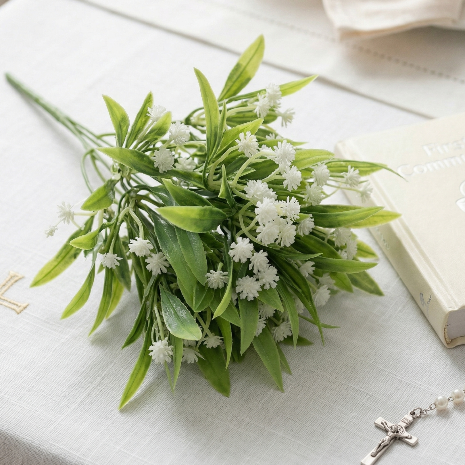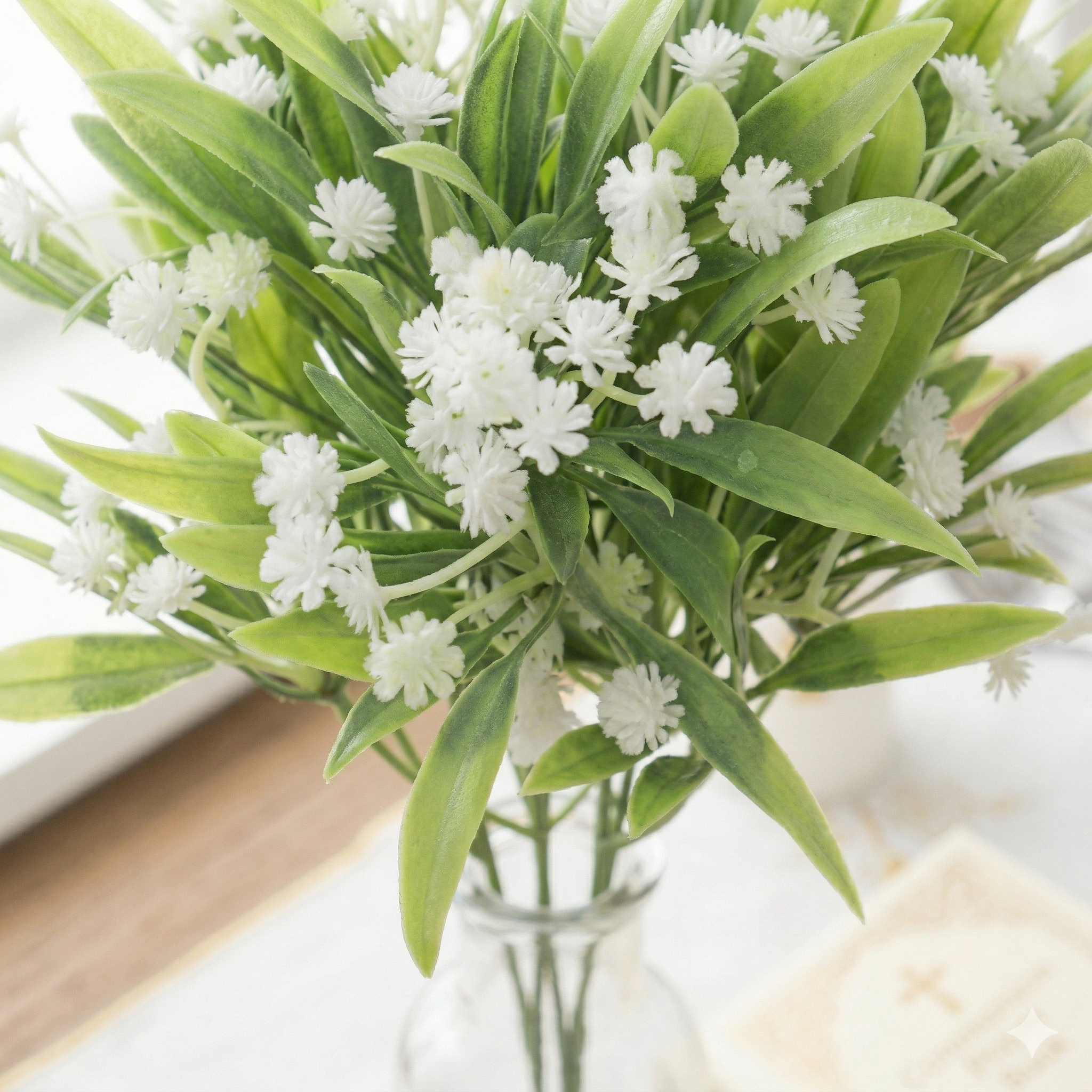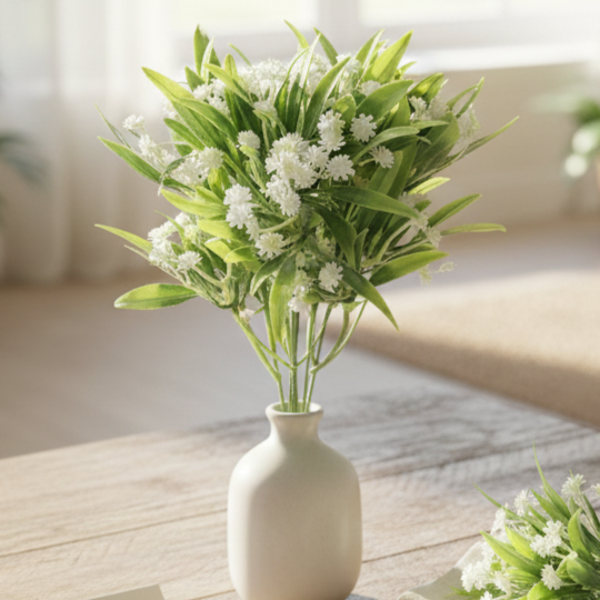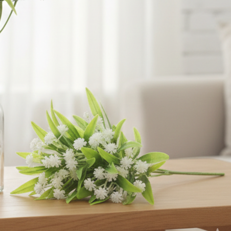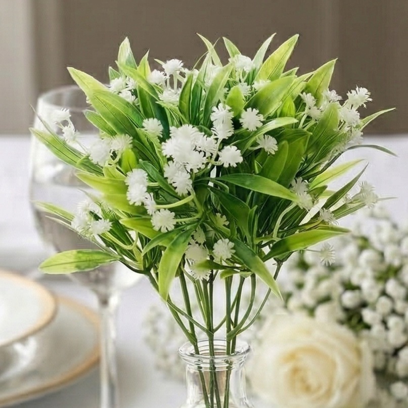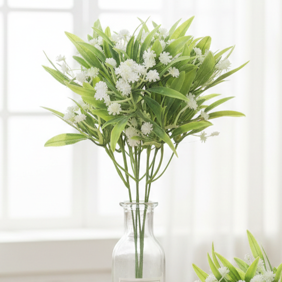 Kwiaty sztuczne białe bukiet 28 cm – dekoracyjna gałązka z drobnymi kwiatami