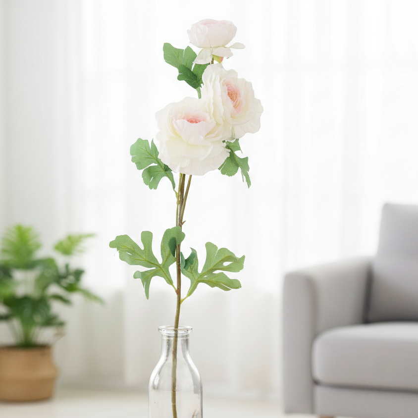 Efektowna sztuczna róża dekoracyjna o długości 74 cm to wyjątkowa ozdoba, która doda wnętrzu klasy i subtelnej elegancji. Duże, pełne kwiaty w odcieniu kremowej bieli zostały starannie wykonane, dzięki czemu prezentują się niezwykle realistycznie. Delikatne płatki oraz zielone liście podkreślają naturalny charakter kompozycji. Długa łodyga sprawia, że kwiat idealnie nadaje się jako dekoracja do wysokiego wazonu, element aranżacji salonu, sypialni czy przestrzeni komercyjnej. To doskonała alternatywa dla żywych roślin – trwała ozdoba wnętrz, która nie wymaga pielęgnacji i przez długi czas zachowuje swój piękny wygląd.
