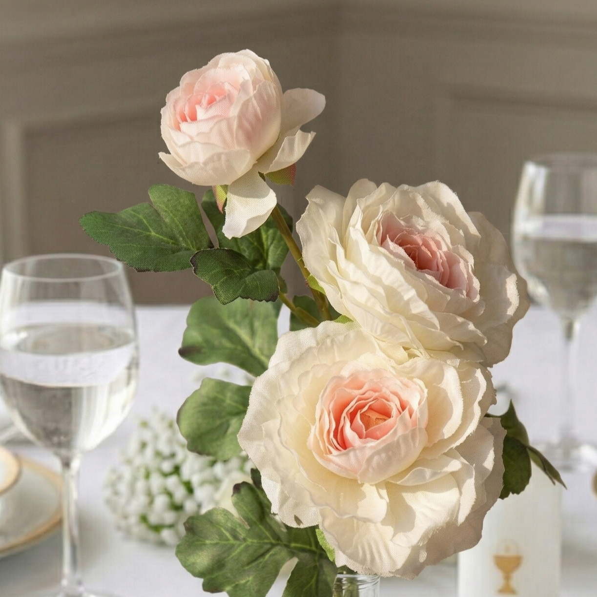 Kwiaty sztuczne kremowa róża 74 cm – elegancka dekoracja do wazonu