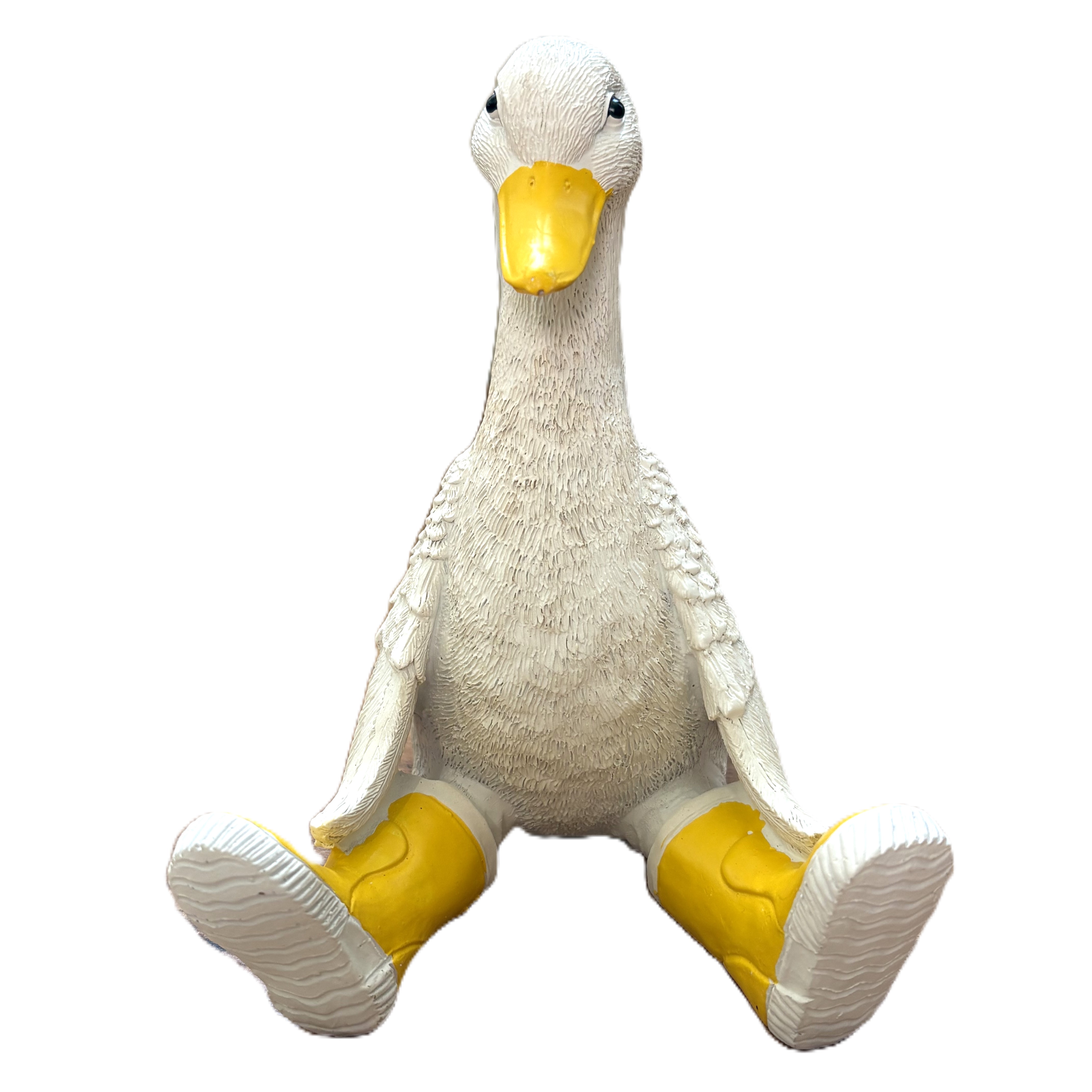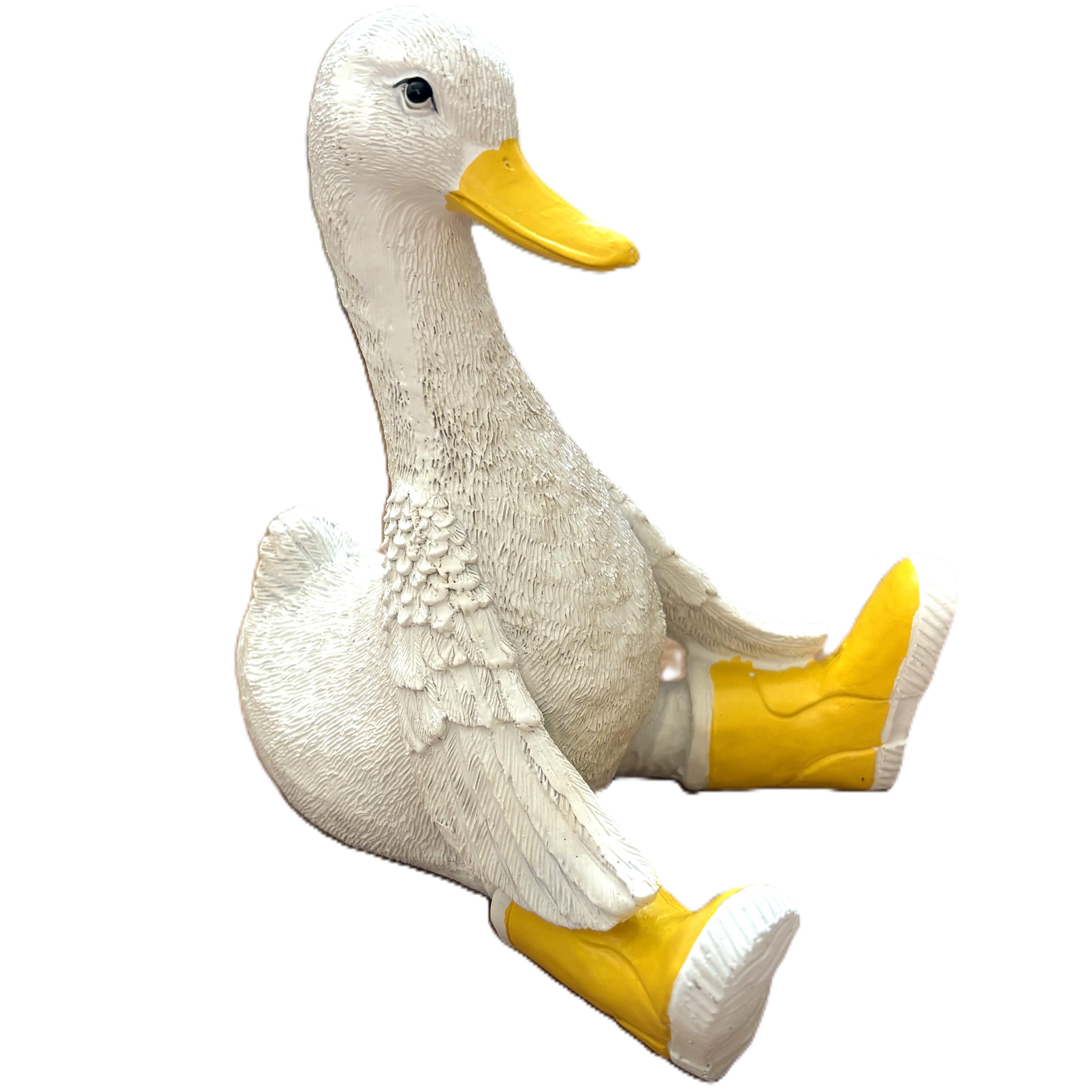 Kaczka z cementu, siedząca w żółtych kaloszach 19,2*18*21,2cm