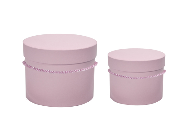 Komplet 2 pudełek różowych okrągłych ze sznurkiem 17x13cm, 15x11cm
