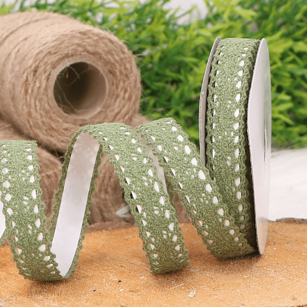 Koronka bawełniana tasiemka samoprzylepna zielona 4,5mb