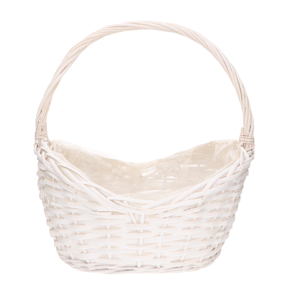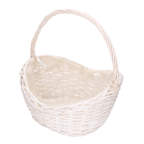 Elegancki koszyk wiklinowy w kolorze białym to idealna propozycja na wyjątkowe okazje, takie jak Pierwsza Komunia Święta, śluby czy przyjęcia okolicznościowe. Wykonany z wysokiej jakości wikliny, zachwyca solidnym wykonaniem oraz ponadczasowym designem. Wyposażony w wygodny uchwyt, ułatwia przenoszenie i doskonale sprawdzi się jako kosz prezentowy, dekoracja stołu lub element aranżacji wnętrza. Subtelny biały kolor dodaje lekkości i elegancji, a naturalna struktura wikliny wpisuje się w modne, rustykalne stylizacje. To praktyczny i estetyczny wybór dla osób ceniących funkcjonalność oraz styl.