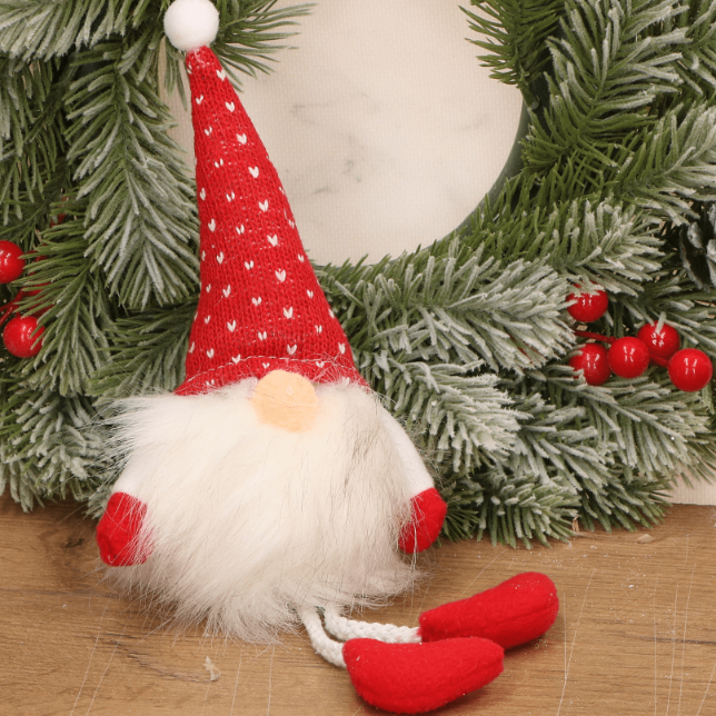 Uroczy krasnal z długą czerwoną czapką to wyjątkowa zawieszka świąteczna, która wprowadzi do wnętrza radosny i magiczny klimat Bożego Narodzenia. Wykonany z miękkich materiałów, posiada charakterystyczną białą brodę, mały nosek i czerwone buciki, które nadają mu wyjątkowego uroku. Jego smukła forma i lekka konstrukcja sprawiają, że idealnie sprawdzi się jako ozdoba choinki, okna, klamki czy ściany. Dzięki wszytemu sznurkowi zawieszenie krasnala jest szybkie i wygodne. To świetna dekoracja zarówno do domu, jak i do biura, a także doskonały pomysł na drobny prezent.
