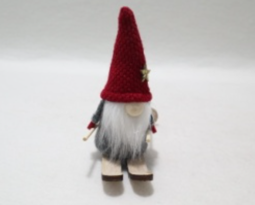 Świąteczny motyw – krasnal z czapką, brodą i nartami