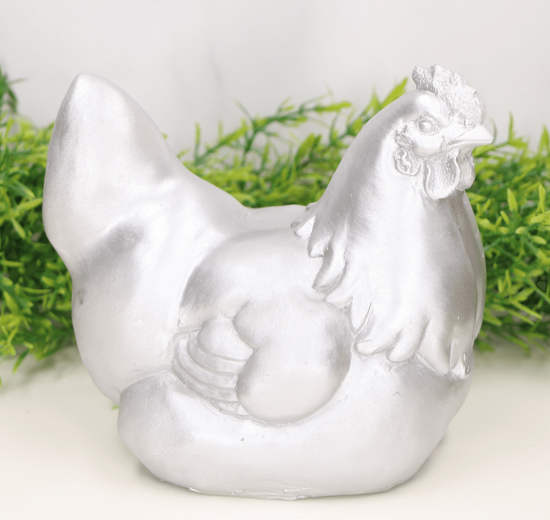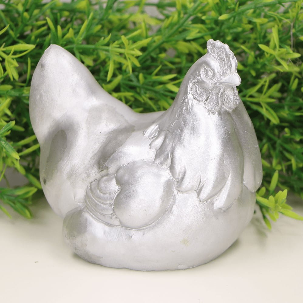 Kura dekoracyjna srebrna na Wielkanoc 9cm