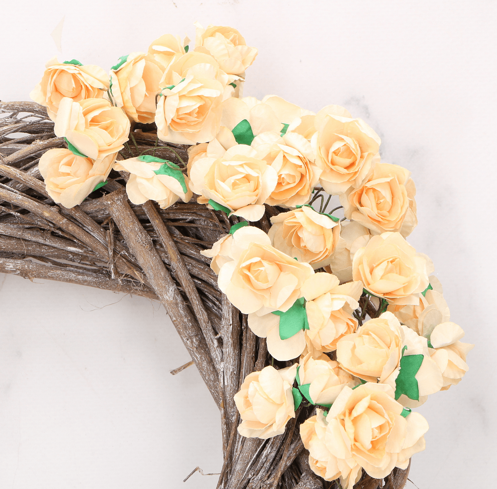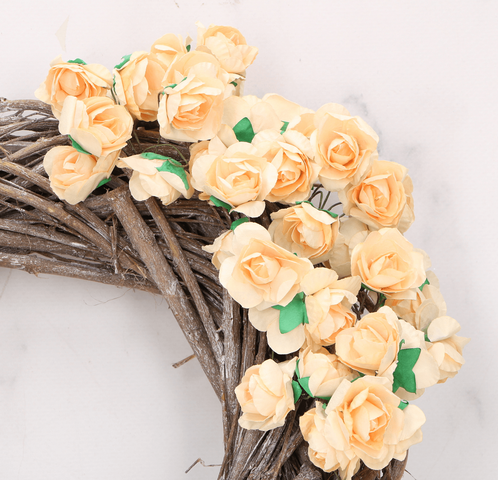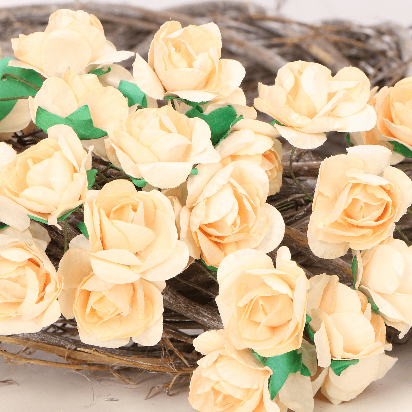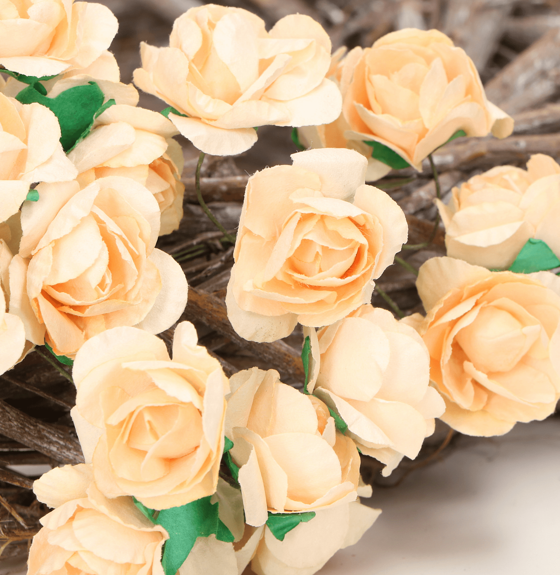 Kwiatki różyczki papierowe na druciku brzoskwinia 144szt.