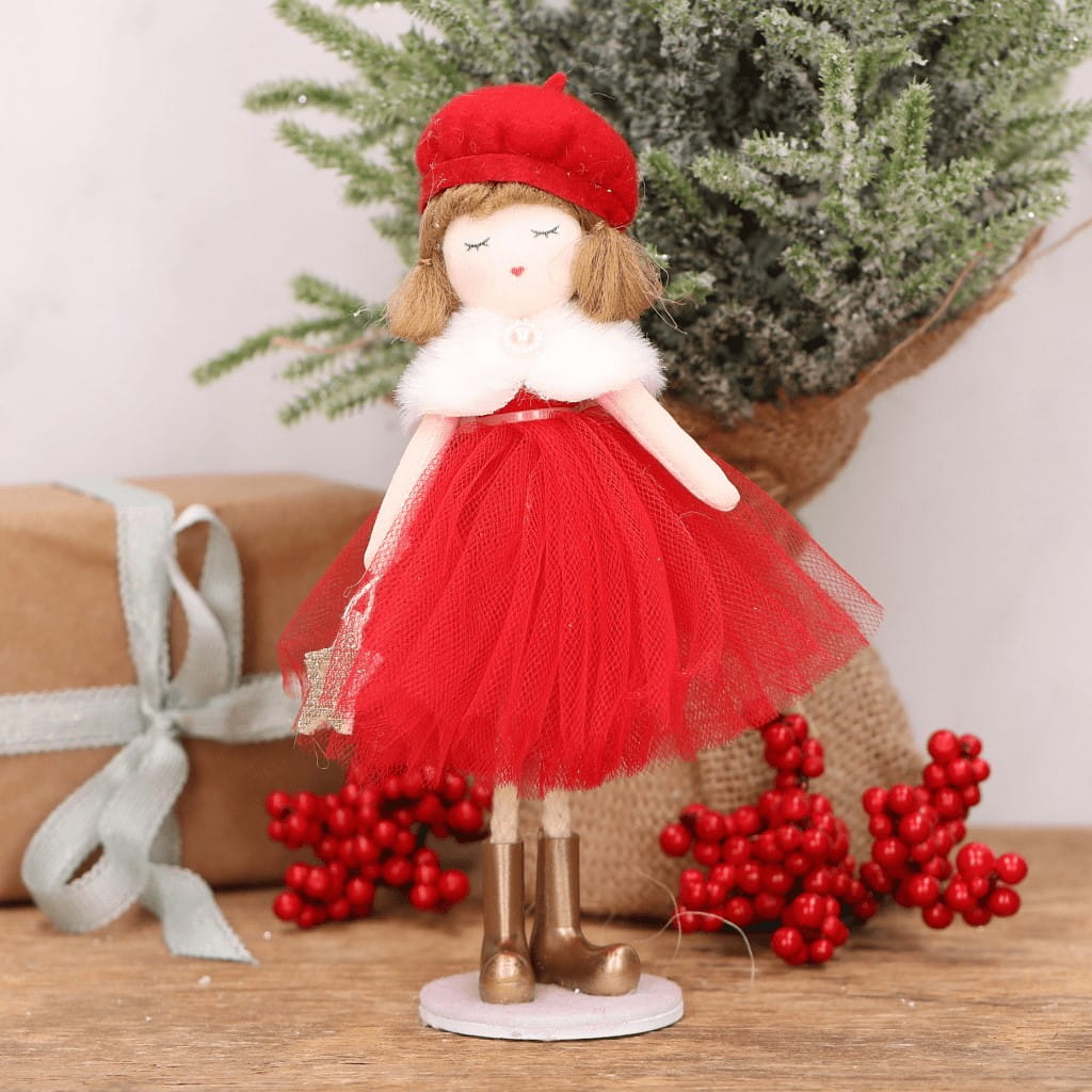 Laleczka świąteczna stojąca w czerwonej sukience 16 cm