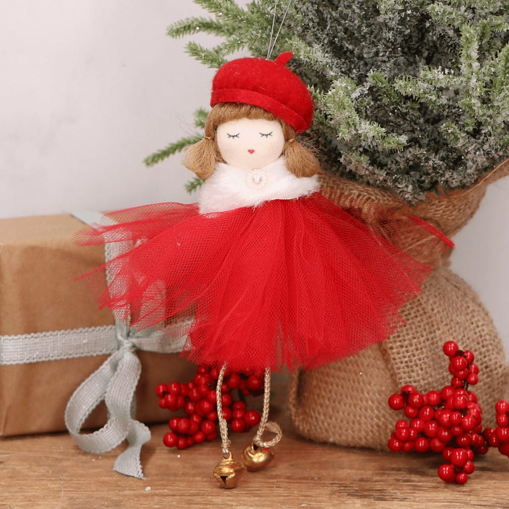 Laleczka świąteczna z dzwoneczkiem w czerwonej sukience 18 cm