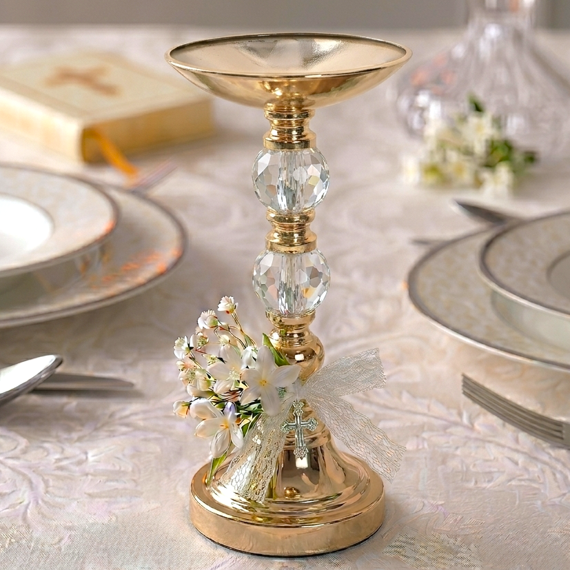 Luksusowy Złoty Świecznik z Kryształem 14.5x27 cm