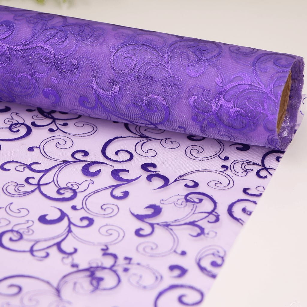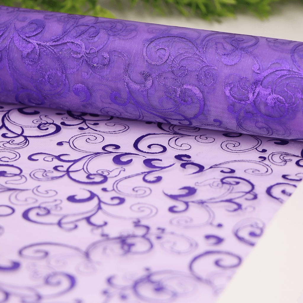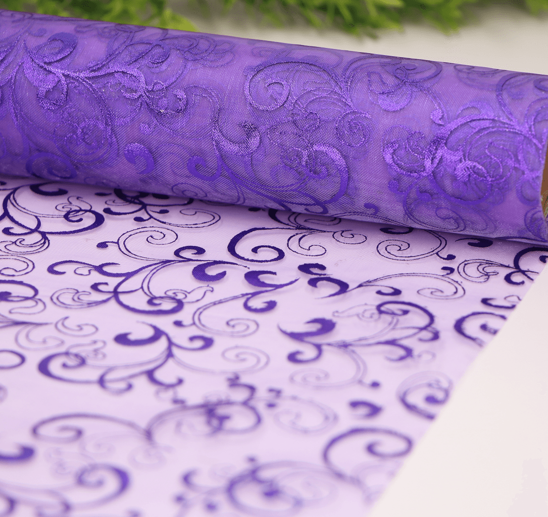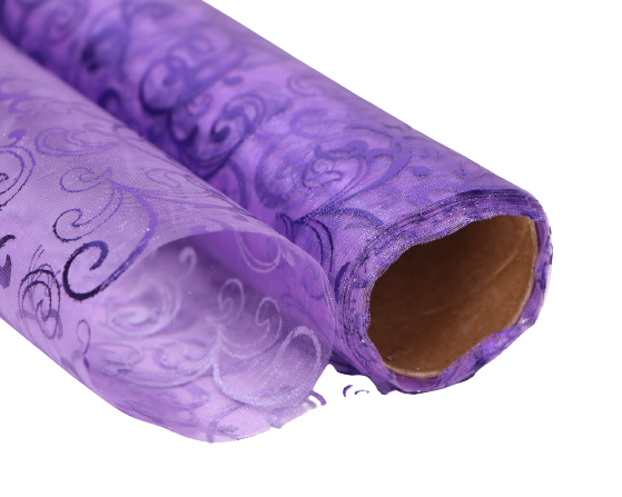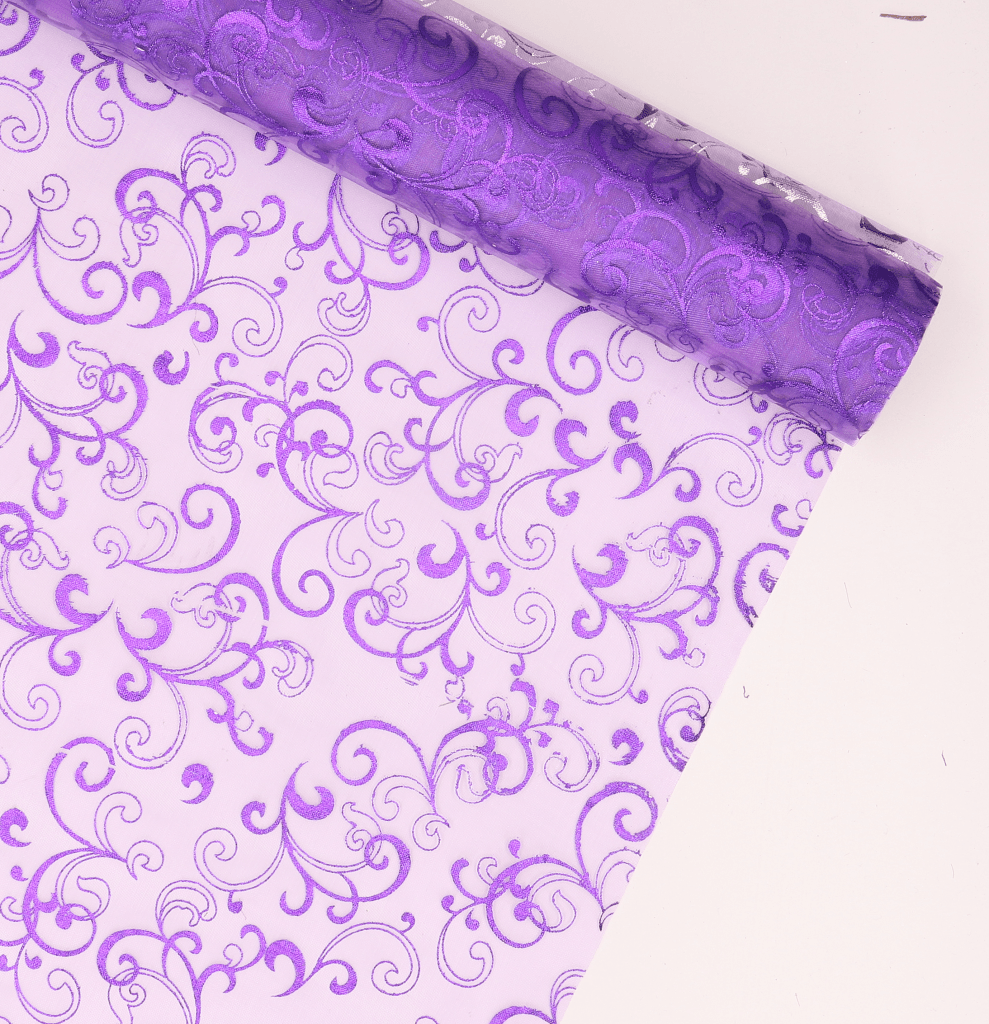 Materiał organza bieżnik fioletowy wzorek 36cm