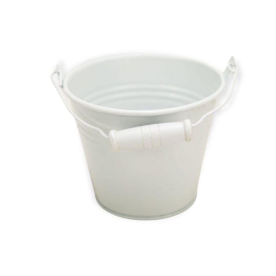 Metalowe ozdobne wiaderko, ciekawy element dekoracji na kwiaty, zioła lub drobne przedmioty.