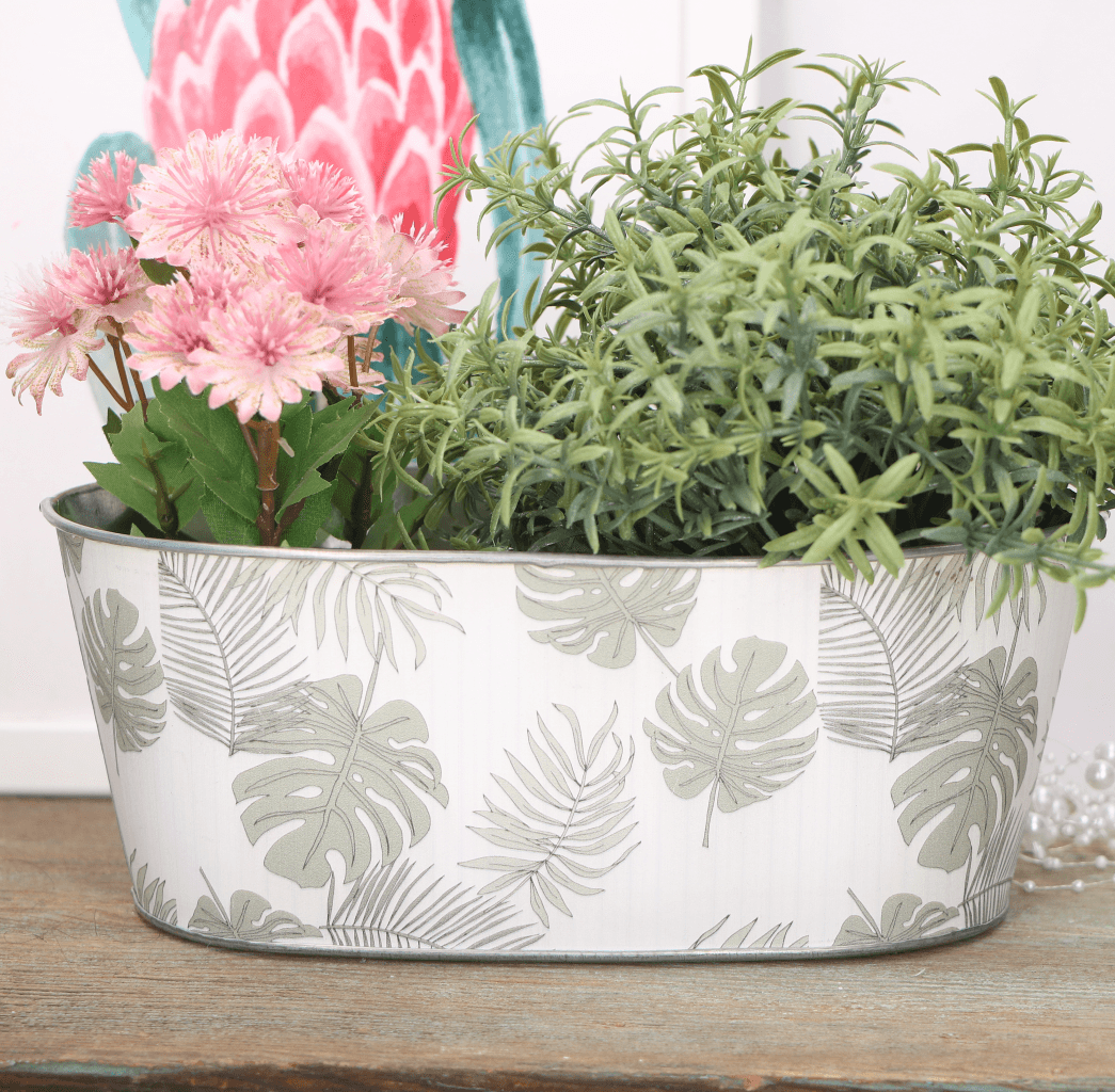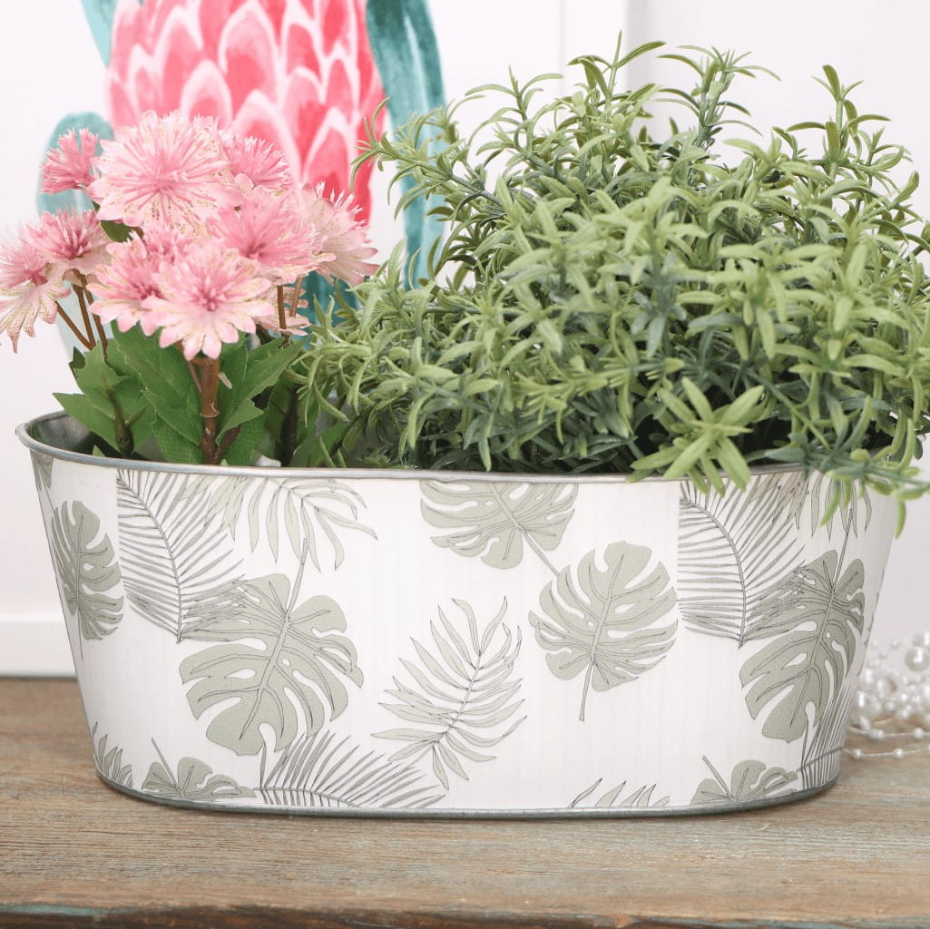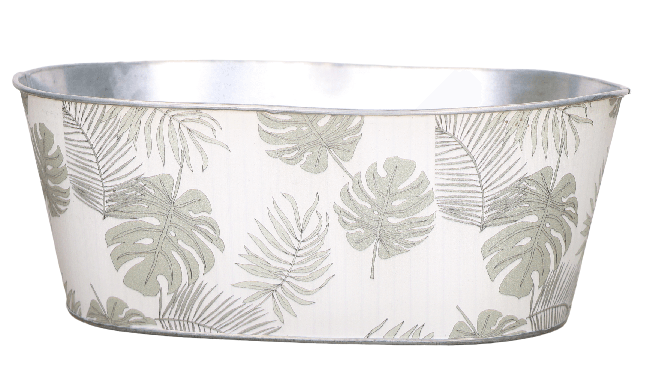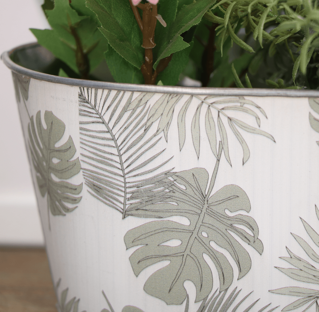 Metalowa doniczka osłonka biała liście monstery 10cm