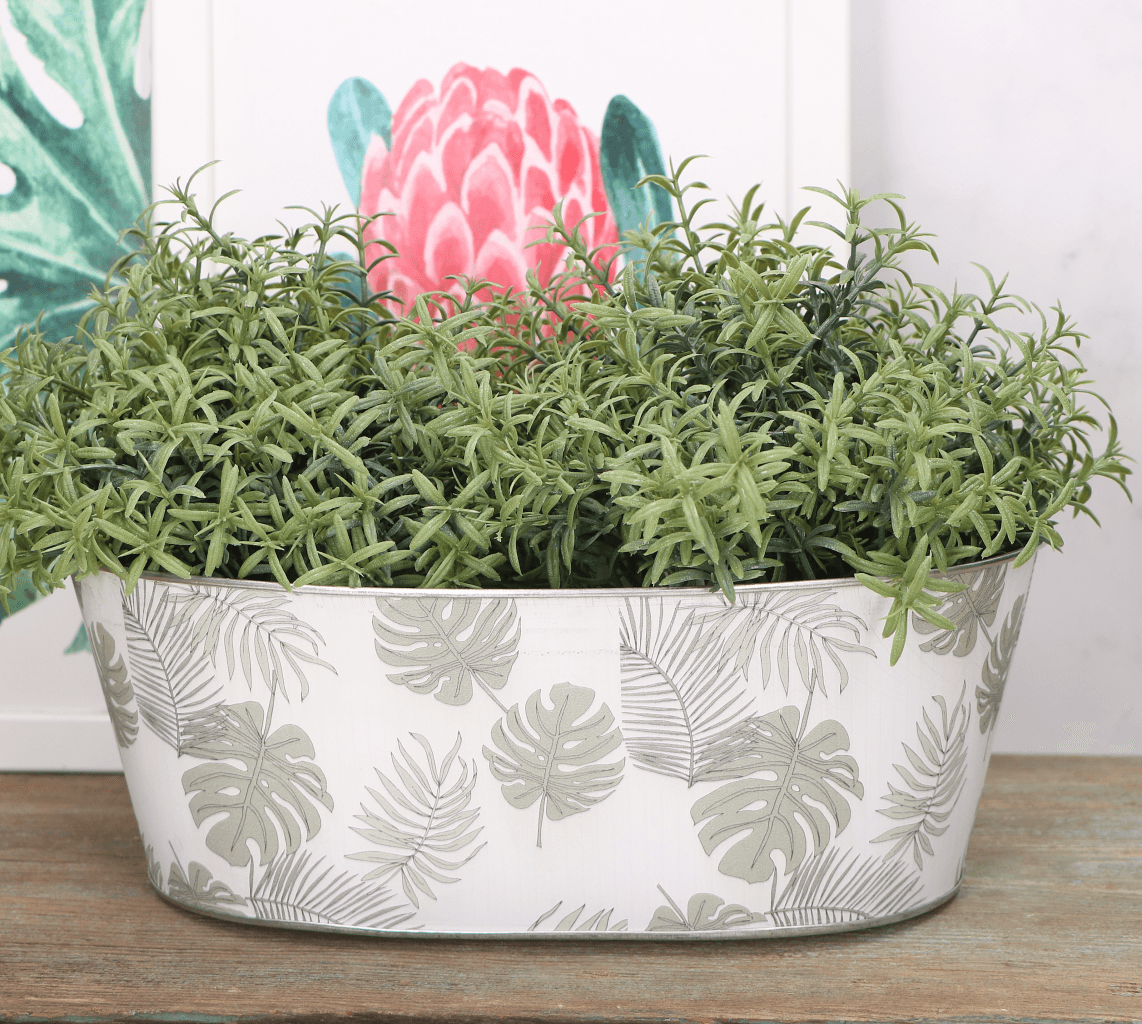 Metalowa doniczka osłonka biała liście monstery 11cm