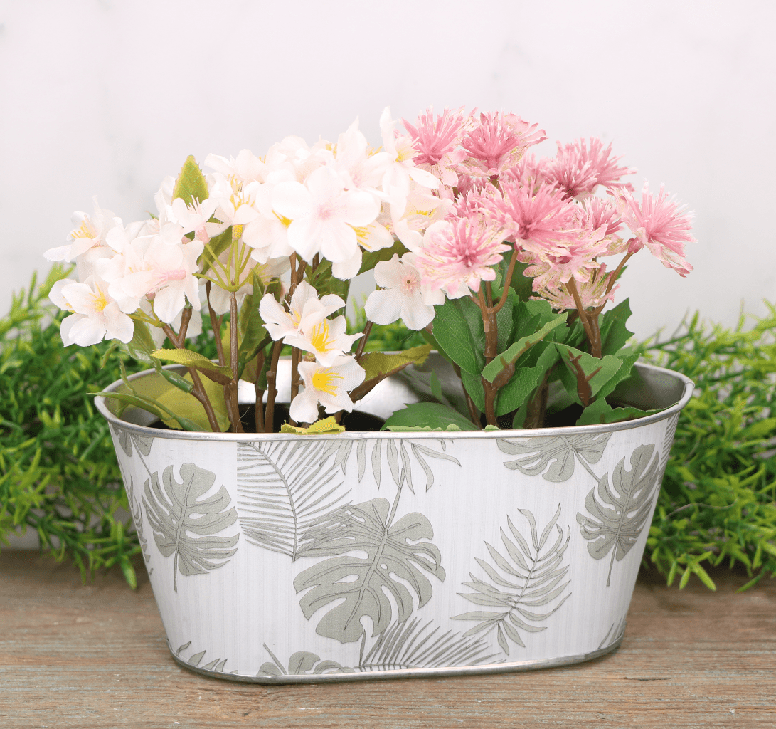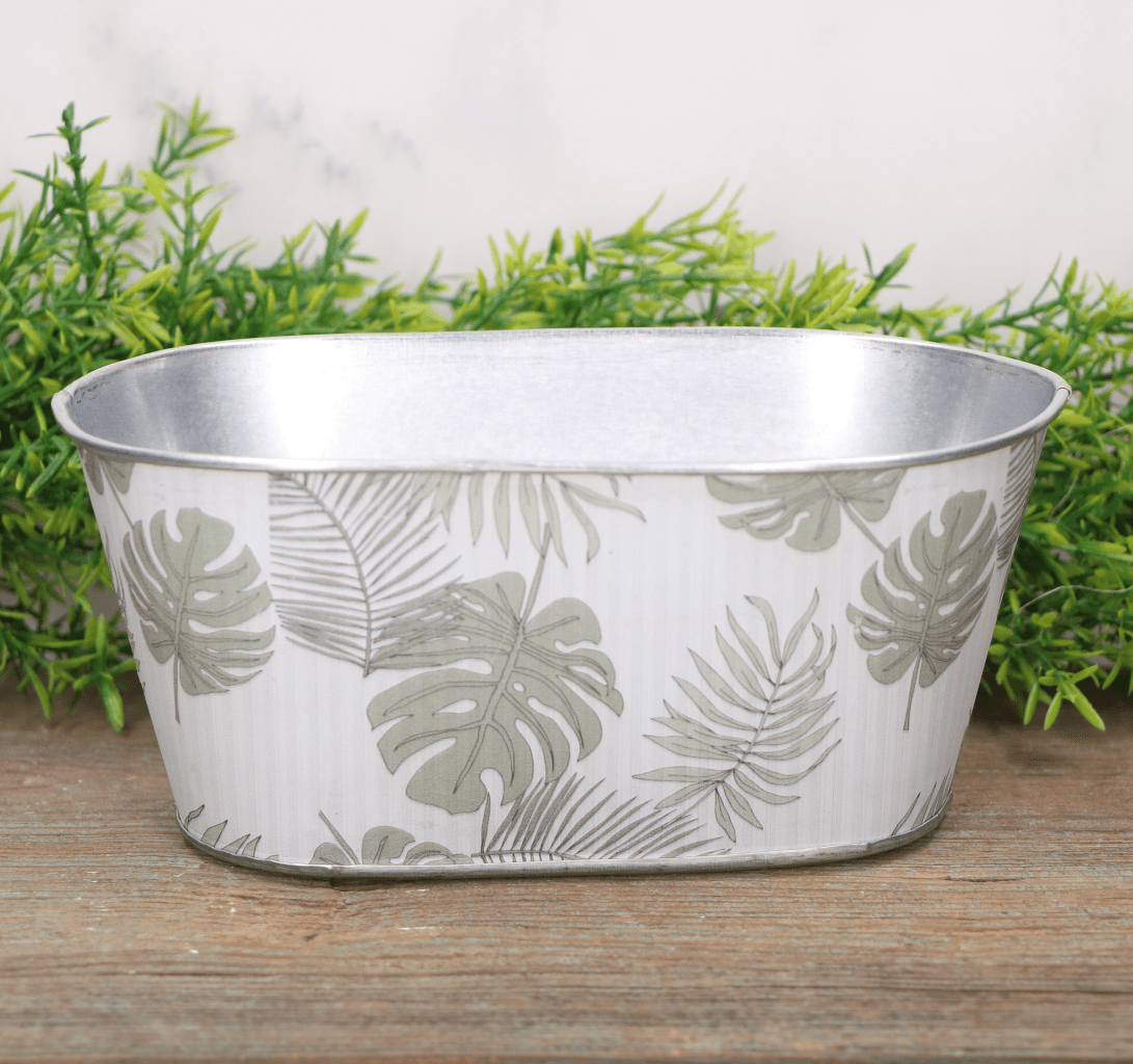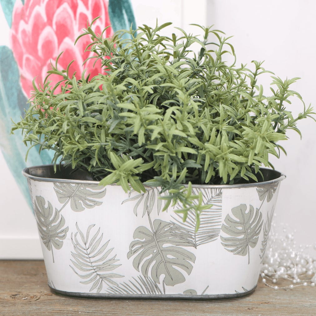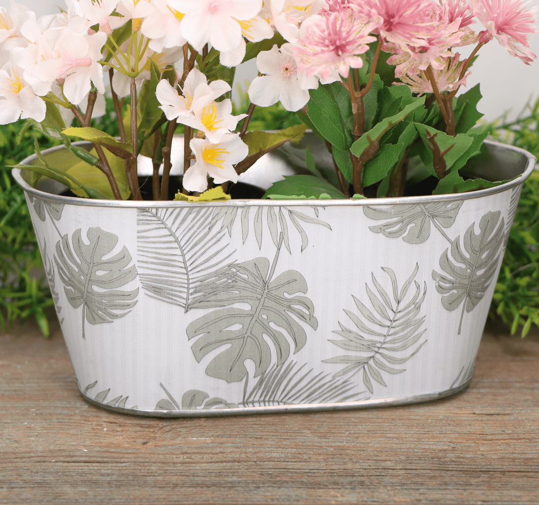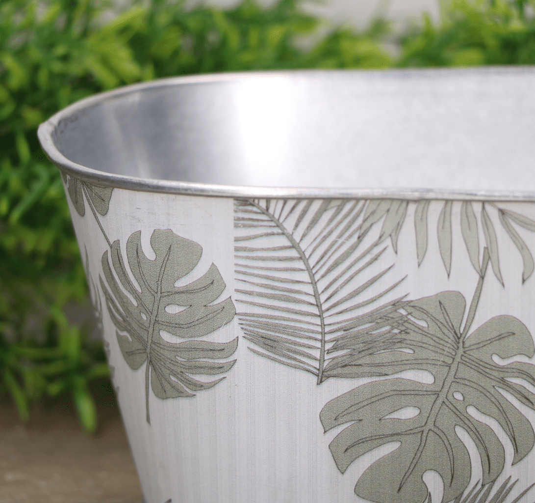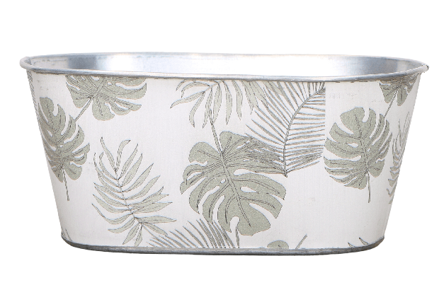 Metalowa doniczka osłonka biała liście monstery 9cm
