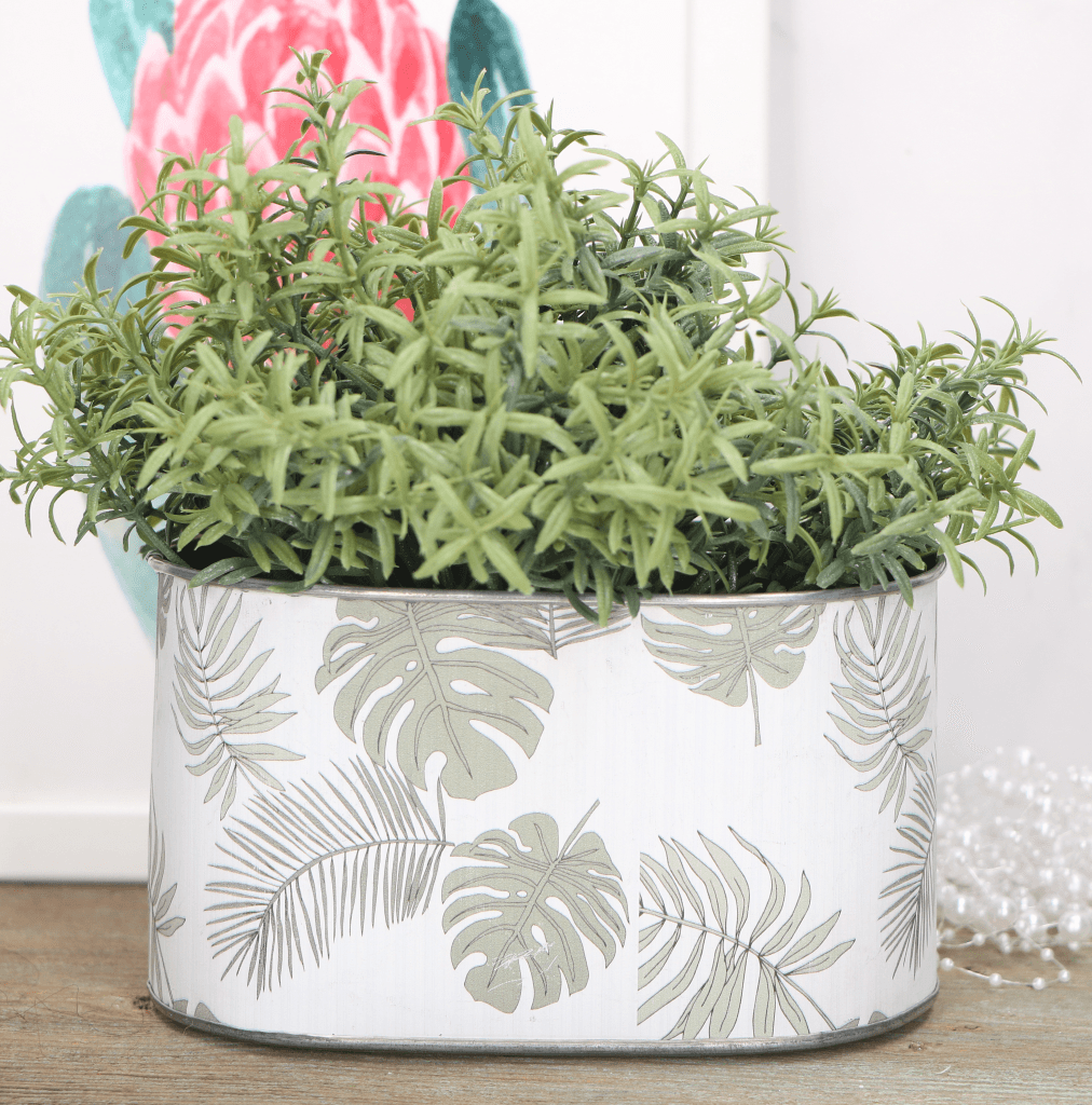 Metalowa doniczka osłonka biała liście monstery 10cm