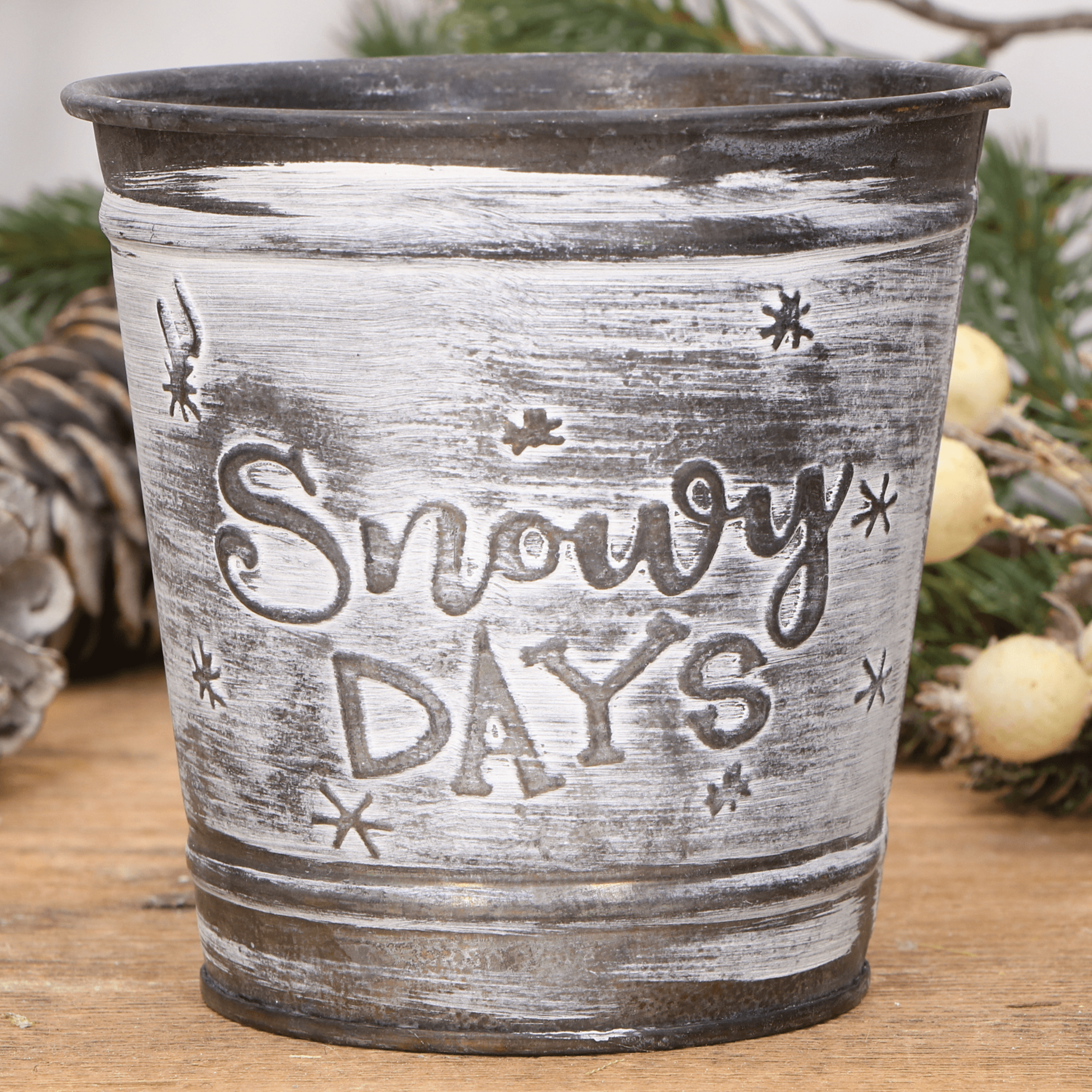 Doniczka metalowa osłonka z uchwytami zimowa świąteczna 9,5x20,5cm