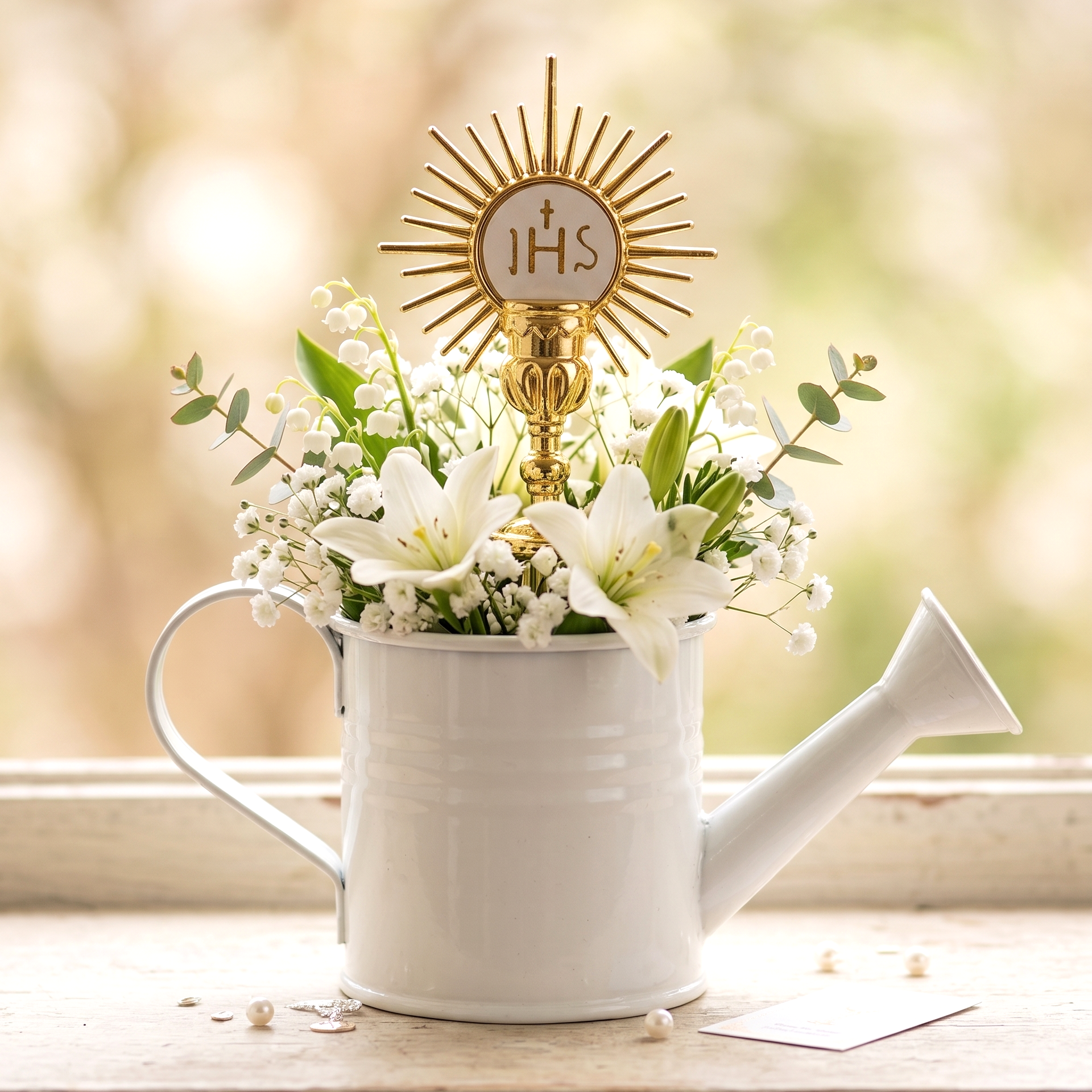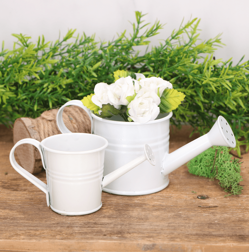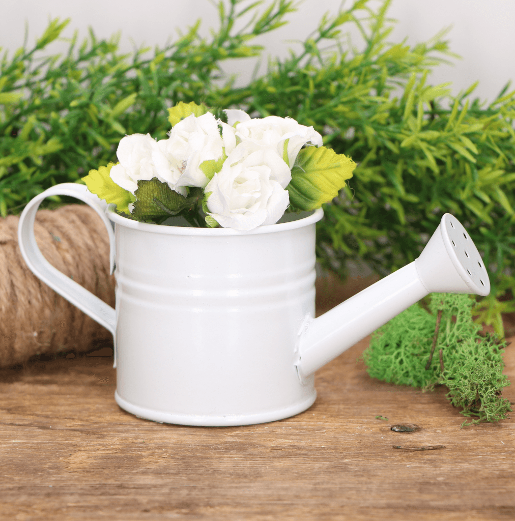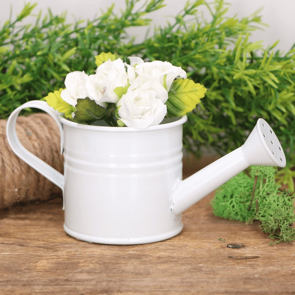 Metalowa konewka ozdobna osłonka biała DUŻA 7cm