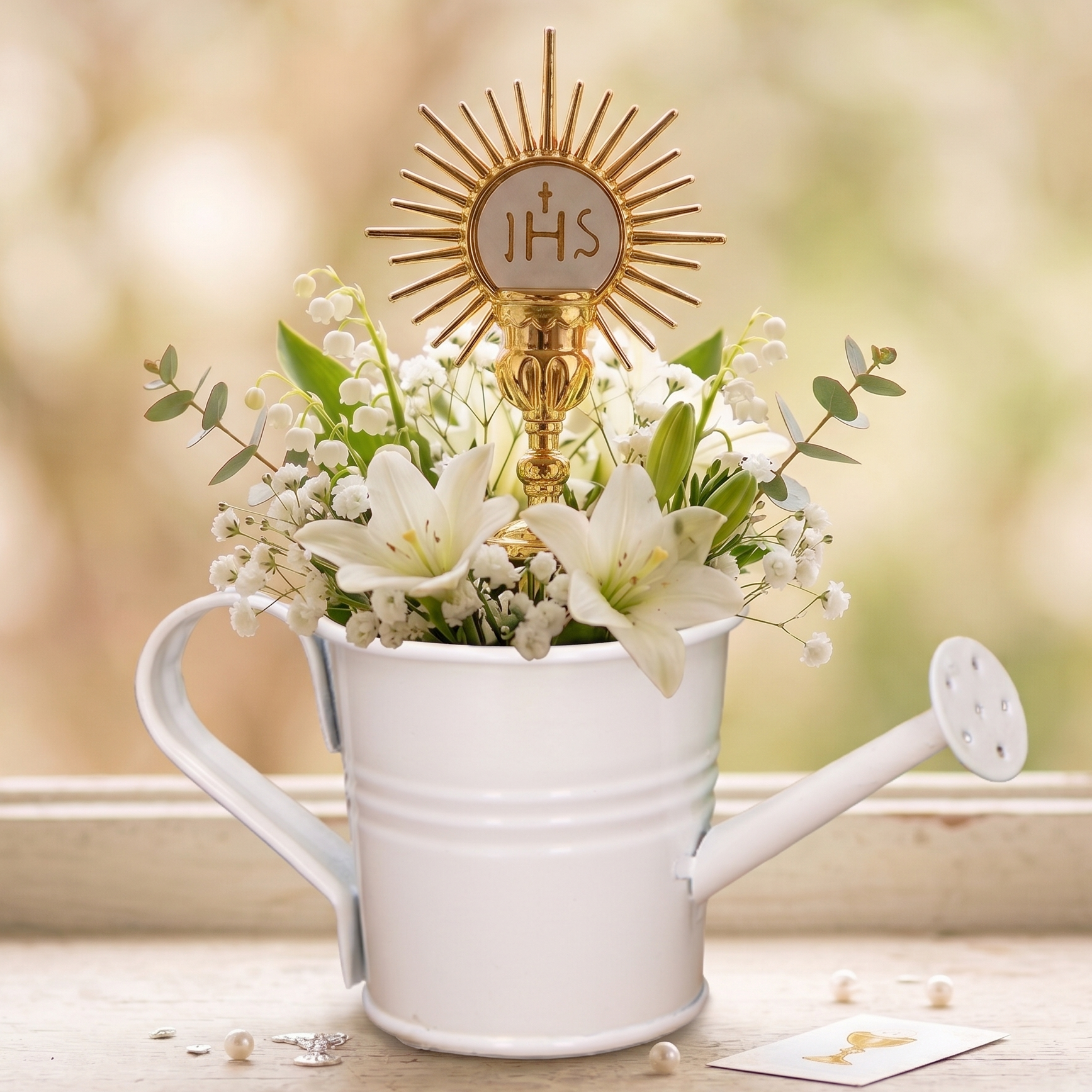 Metalowa konewka ozdobna osłonka biała MAŁA 6cm