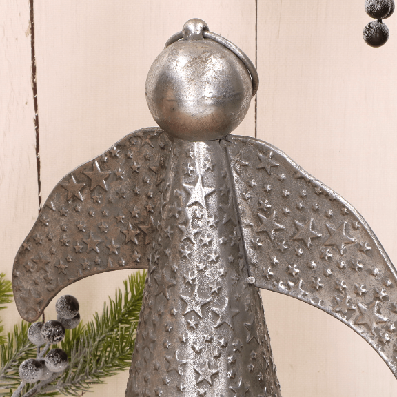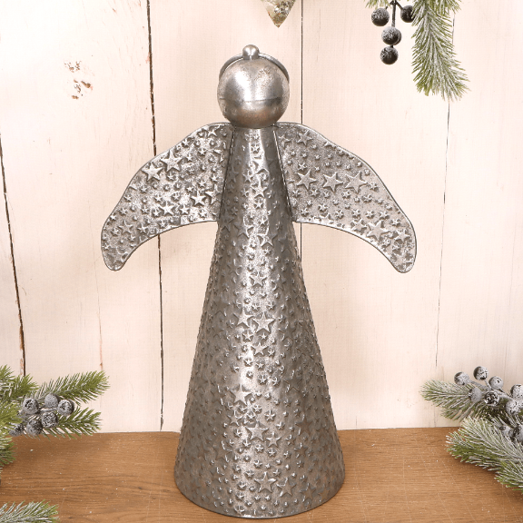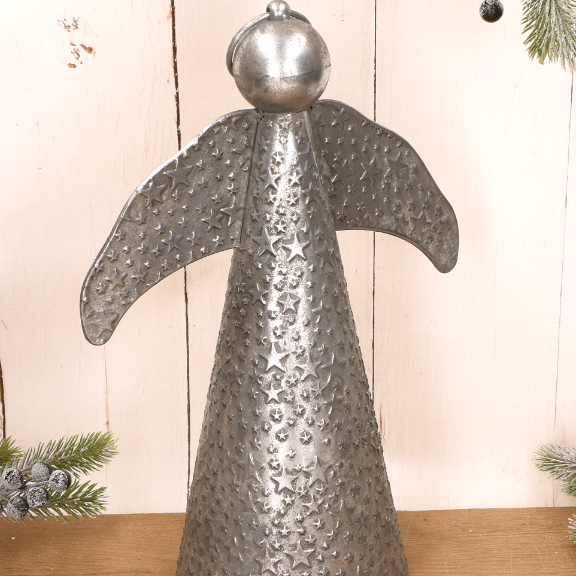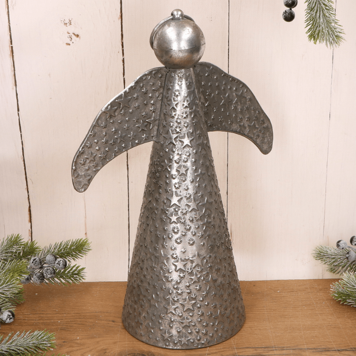 Metalowy anioł dekoracyjny 40 cm – ręcznie tłoczony wzór