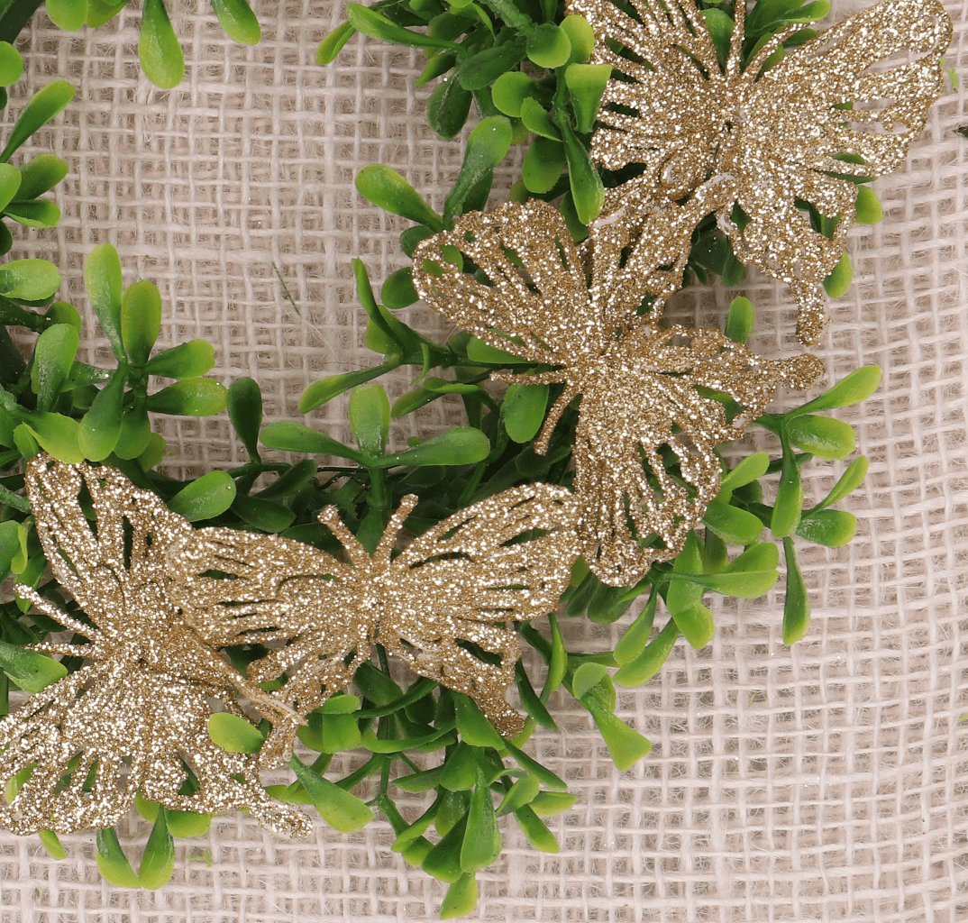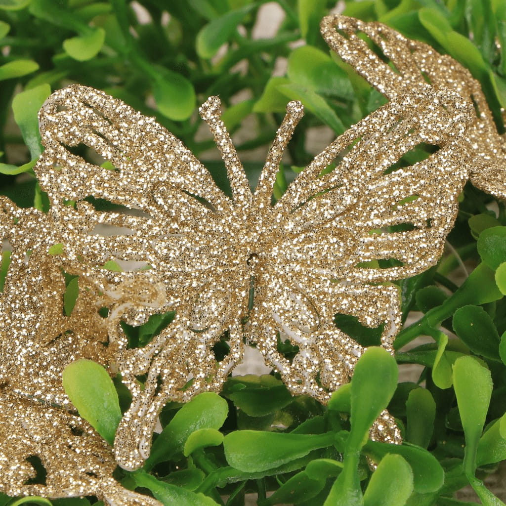 Motyle na druciku brokatowe złote 72szt CAŁA PACZKA