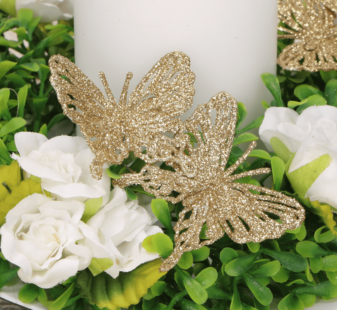 Motyle na druciku brokatowe białe 72szt CAŁA PACZKA
