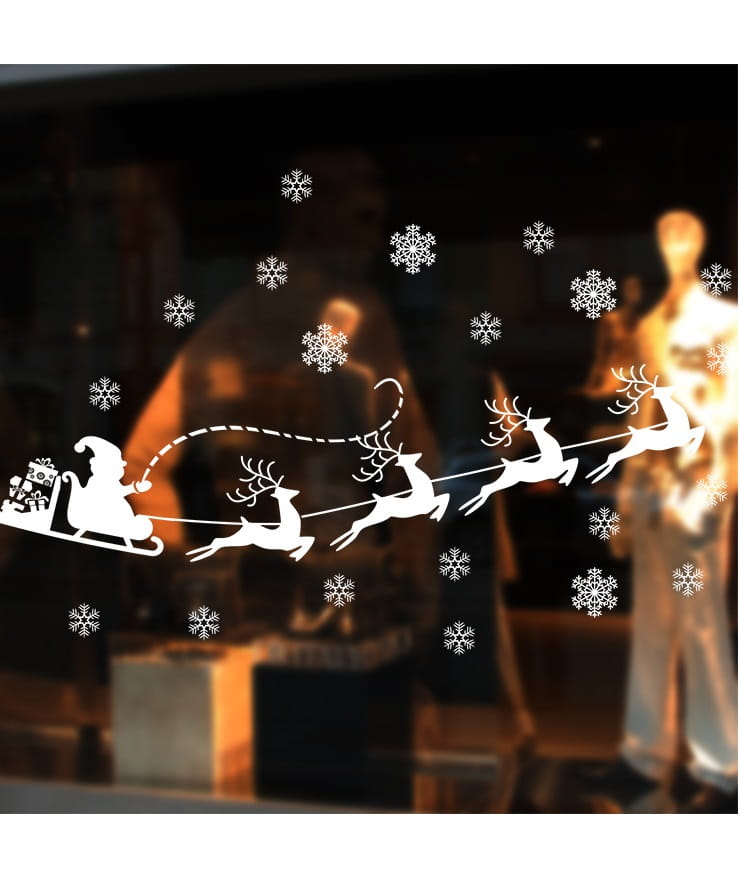 Naklejka na okno świąteczna Mikołaj na saniach, renifery 1szt