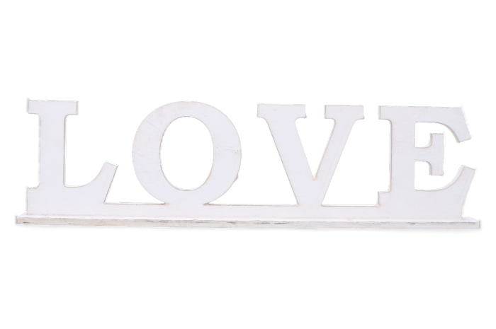 Napis LOVE drewniany Przecierana Biel 26 cm